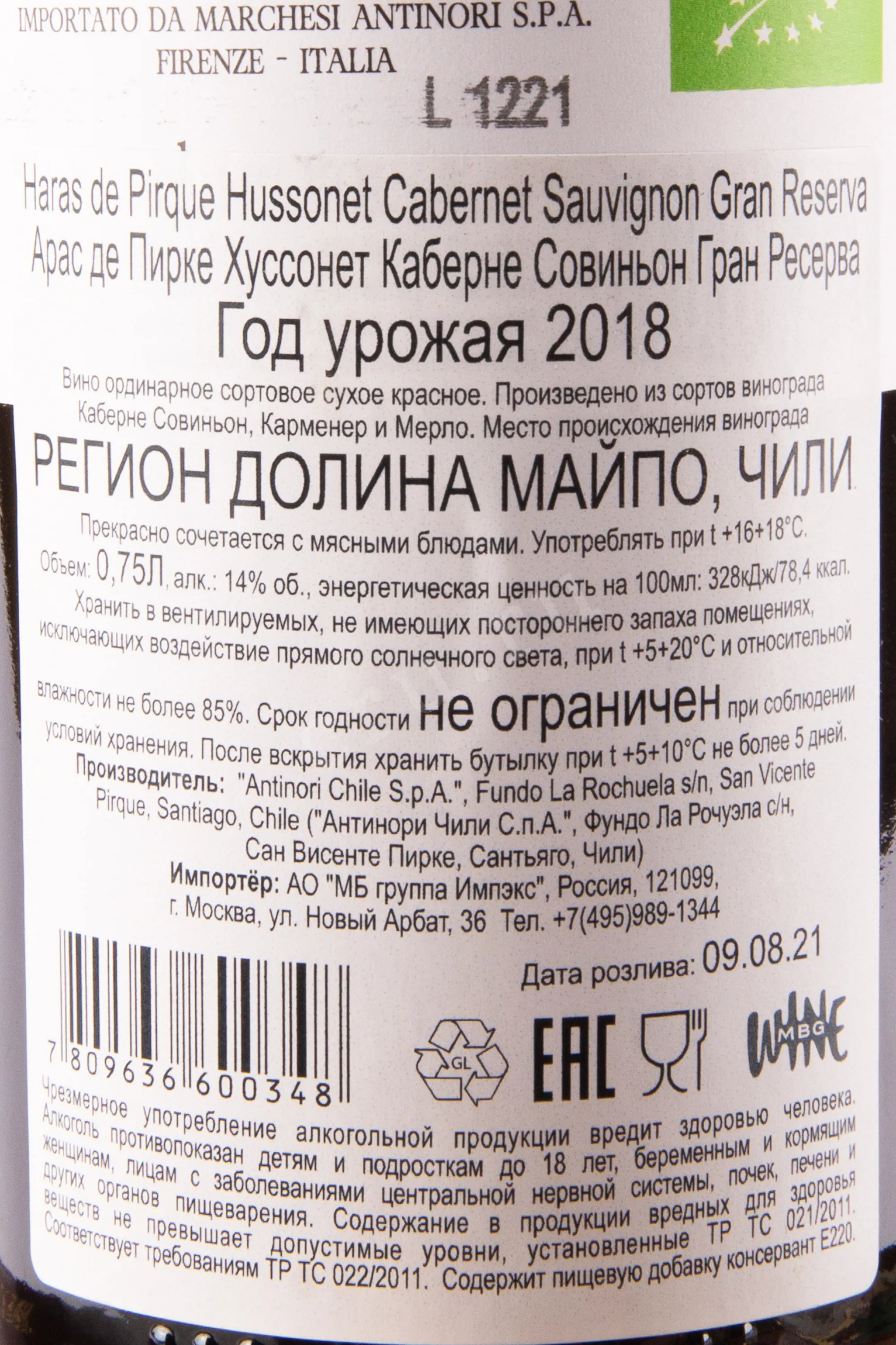 Haras de Pirque Hussonet Gran Reserva 0.75 л купить - Чилийское вино Арас де Пирке Хуссонет Гран Резерва цена в магазине г. Москва, ул. Профсоюзная, д. 16/10 10:00-22:00 Ежедневно +7 (495) 920-20-02 info@cru.ru