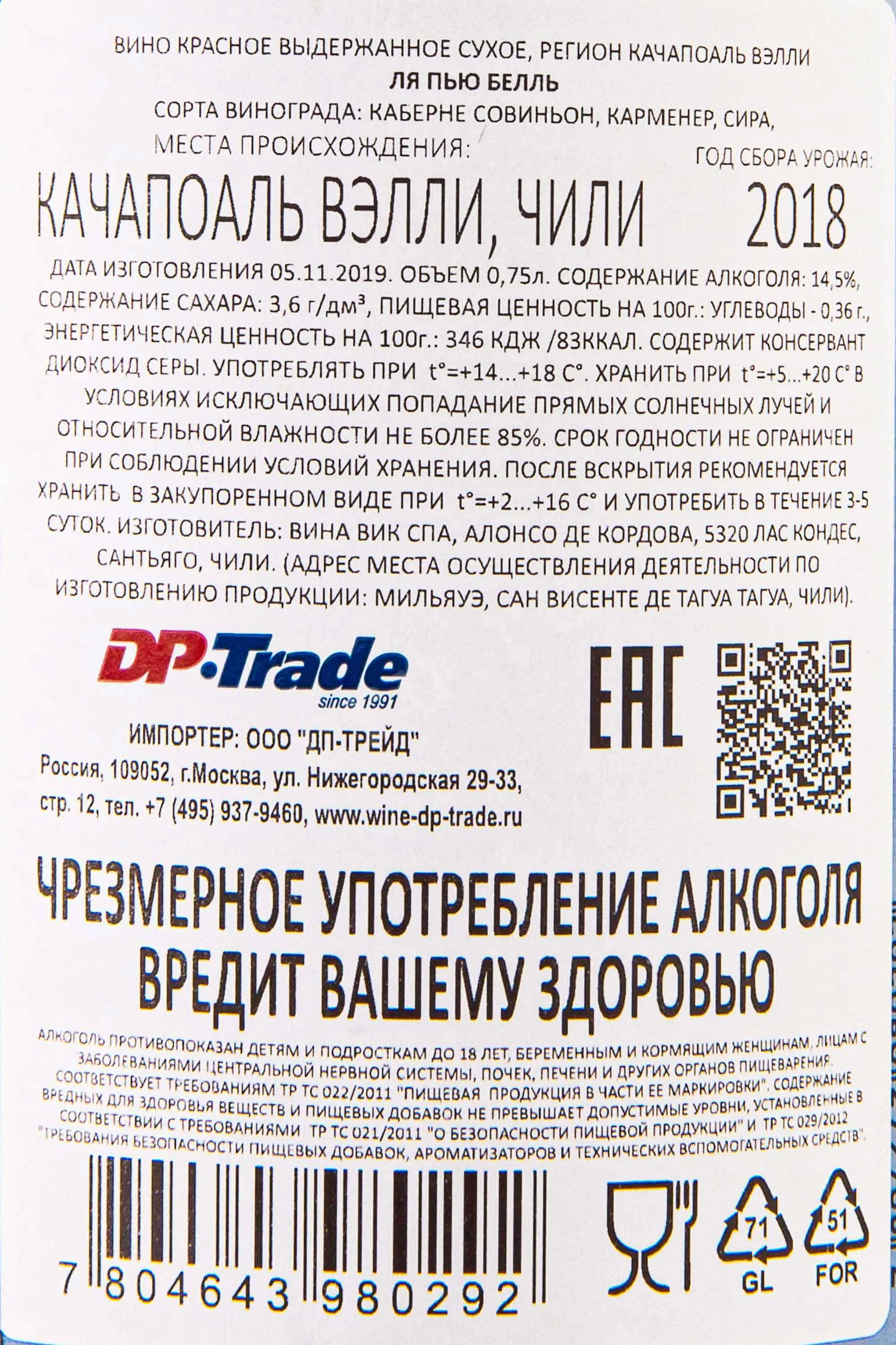 La Piu Belle 2018 0.75 л купить - Чилийское вино Ля Пью Белль цена в магазине г. Москва, ул. Профсоюзная, д. 16/10 10:00-22:00 Ежедневно +7 (495) 920-20-02 info@cru.ru