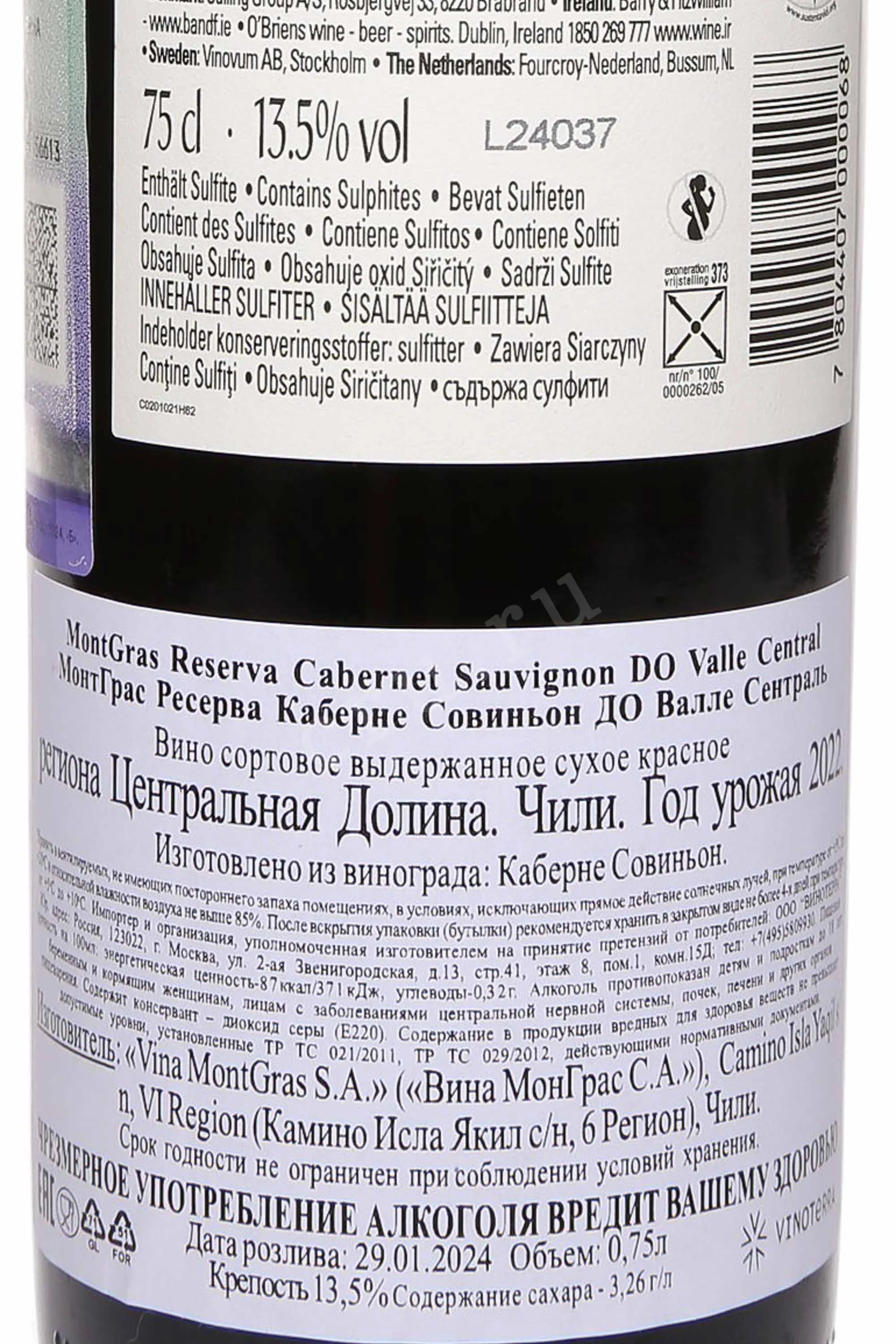 Красное сухое вино Montgras Reserva DO 2022 г. 0,75 л создано в центральной части Чили, в долине Кольчагуа, где виноградники расположены на высоте от 200 до 400 метров над уровнем моря. Здесь теплый климат уравновешивается влиянием холодного океанического бриза и значительными перепадами температур между днем и ночью. В 2022 году лето было умеренным, без резких перегревов, что позволило ягодам медленно накапливать сахар и сохранять кислотность. Урожай отличался равномерной зрелостью, а содержание фенольных соединений оказалось выше среднего. В завершение напиток выдержали в дубовых бочках, где он приобрел выразительную структуру и сложность.