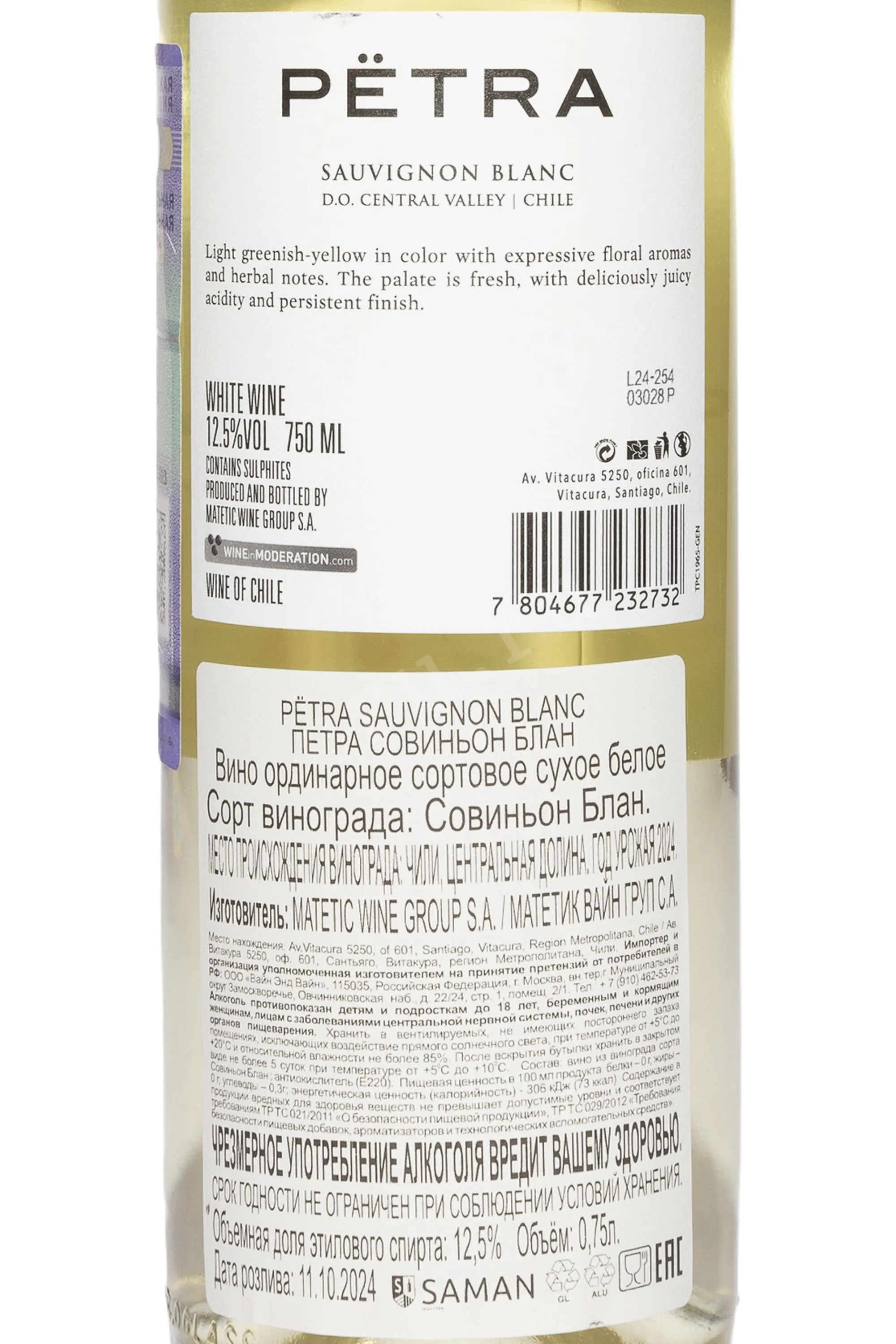Вино Matetic Petra Sauvignon Blanc 2024 0.75 л происходит из уникального терруара долины Сан-Антонио в Чили, где прохладный океанический климат и туманы с Тихого океана создавали идеальные условия для формирования свежести и минералистики ягод. Урожай собирался вручную ранним утром, чтобы сохранить максимальную ароматику и кислотность. Для ферментации применялись современные методы с контролем температуры, благодаря чему удалось подчеркнуть натуральную чистоту сорта. Небольшая часть сусла выдерживалась на осадке, что добавляло текстурности и объёмности вкусу, сохраняя при этом характерную хрупкую свежесть. В результате напиток обрел элегантный баланс между сочной фруктовостью и тонкими травянистыми оттенками, отражая специфику прибрежного чилийского терруара.