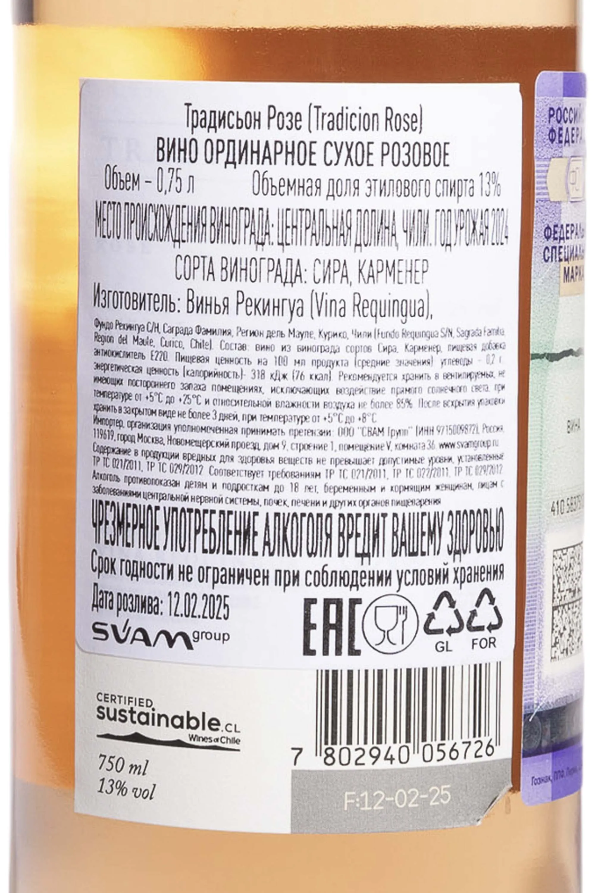 Вино Tradicion Rose 2024 0.75 л — напиток высокого качества, при изготовлении которого применяется бережная мацерация на кожице в течение короткого времени (чаще всего 6–12 часов), что позволяет достичь чистоты и деликатности без излишней танинности. После прессования сусло охлаждается и проходит ферментацию при контролируемой температуре (обычно 12–18 °C) в нержавеющих резервуарах, что сохраняет ароматические соединения. Виноград выращен на участках Центральной Долины Чили, где сочетание прохладных ночей, солнечных дней и почв с содержанием кремния или гравия способствует аккумулированию тонких ароматов. Горные ветра Анд и близость Тихого океана придают ягодам дополнительную свежесть и благородную кислотность.