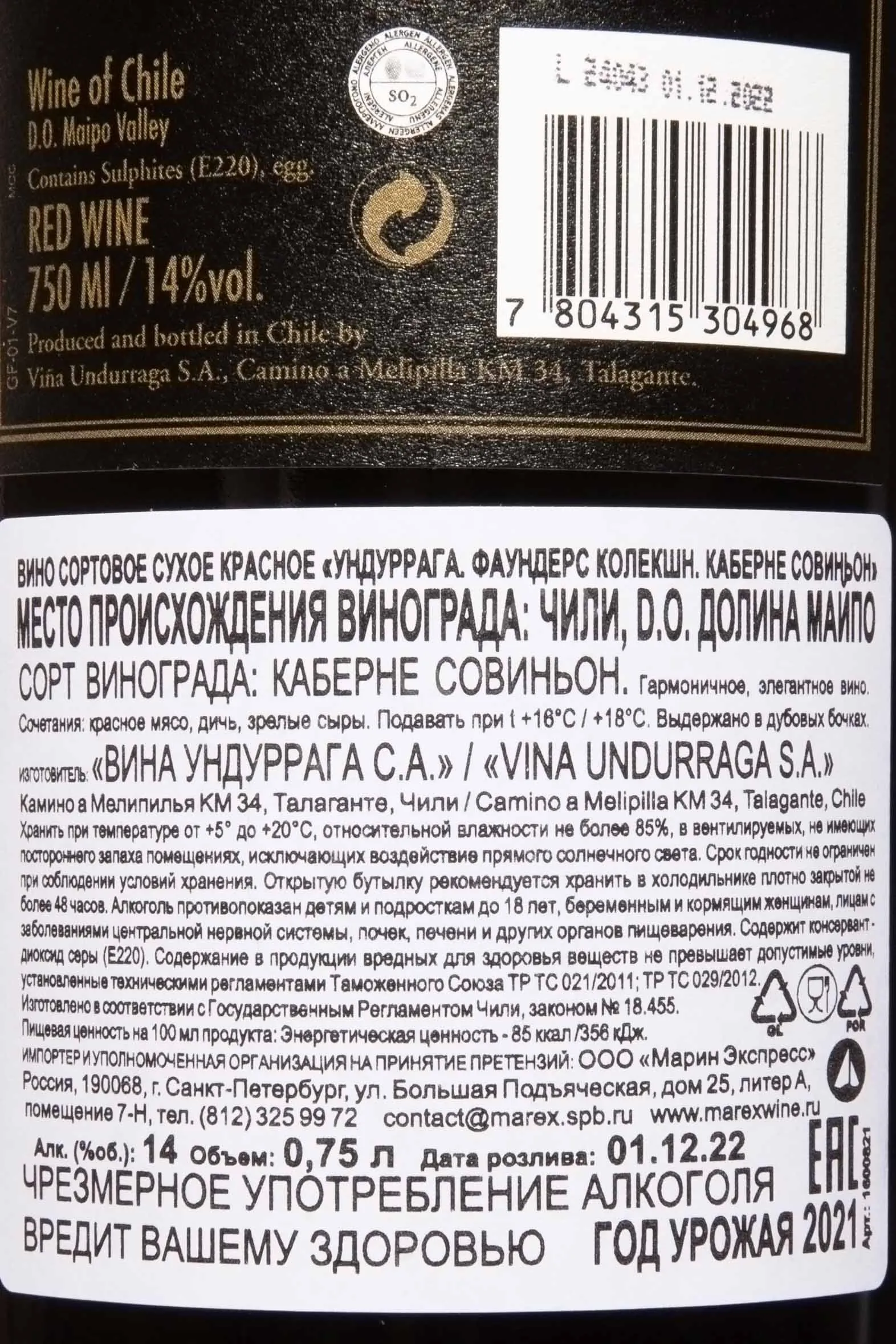 Изготовитель: "Вина Ундуррага С.А."