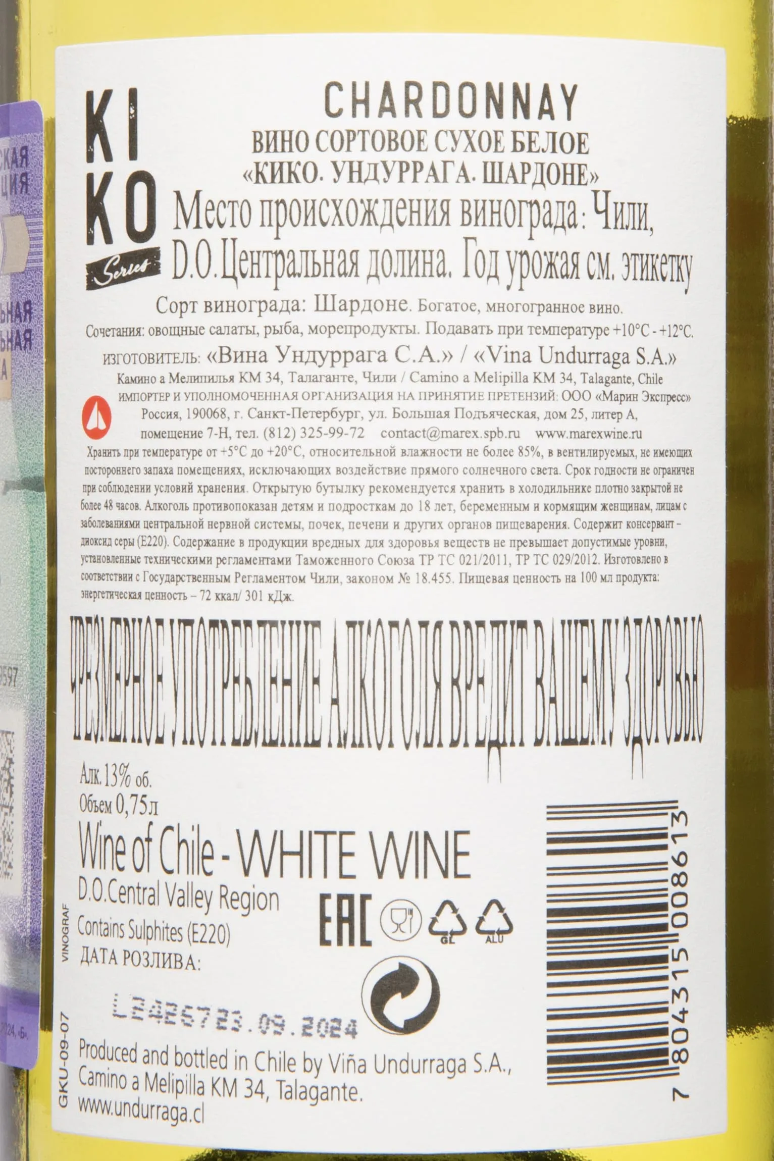 Ундуррага Кико Шардоне ДО 2023 0.75