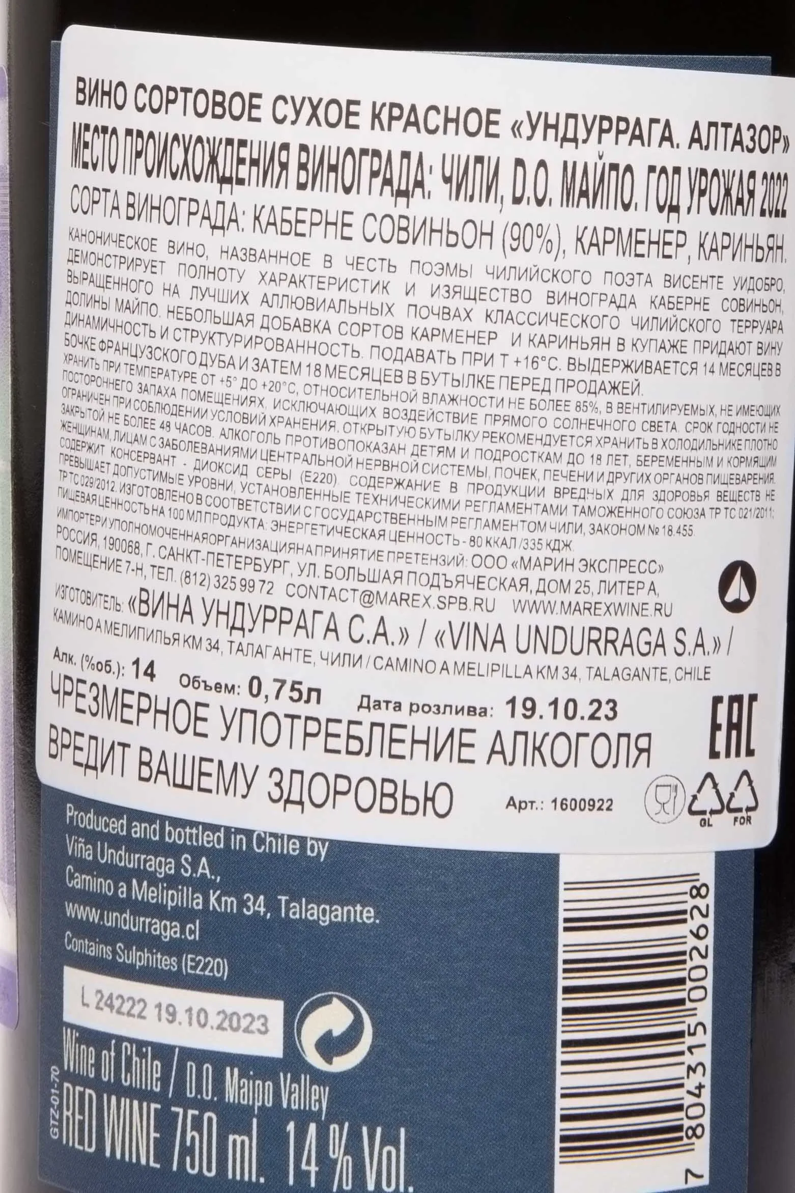 Undurraga Altazor DO in gift box 0.75 л купить - Чилийское вино Ундуррага Алтазор ДО в подарочной упаковке цена в магазине г. Москва, ул. Профсоюзная, д. 16/10 10:00-22:00 Ежедневно +7 (495) 920-20-02 info@cru.ru