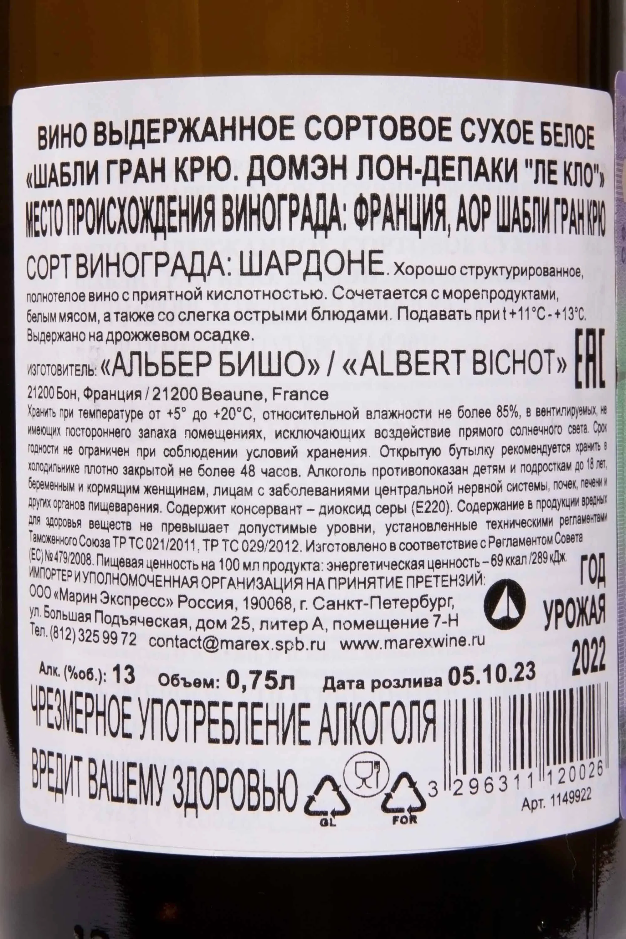 Albert Bichot Chablis Grand Cru Domain Long Depaquit Les Clos 0.75 л купить - Французское вино Альбер Бишо Шабли Гран Крю Домэн Лон-Депаки Ле Кло цена в магазинег. Москва, ул. Профсоюзная, д. 16/1010:00-22:00 Ежедневно+7 (495) 920-20-02info@cru.ru