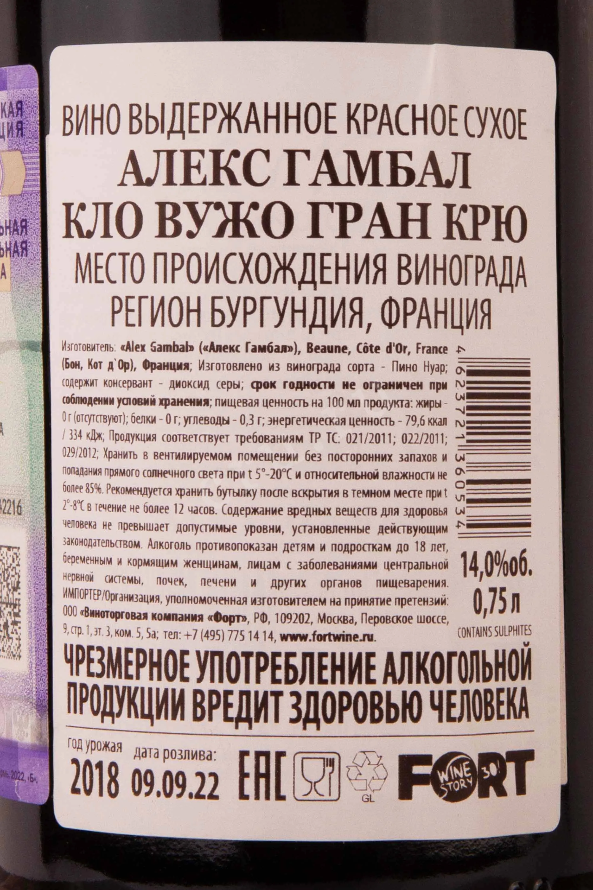 Алекс Гамбал Кло Вужо Гран Крю 2018 0.75