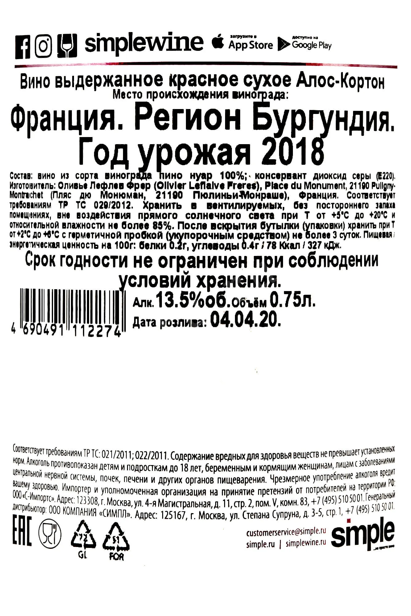 Aloxe-Corton Olivier Leflaive 2018 0.75 л купить - Французское вино Алос-Кортон Оливье Лефлев цена в магазине г. Москва, ул. Профсоюзная, д. 16/10 10:00-22:00 Ежедневно +7 (495) 920-20-02 info@cru.ru
