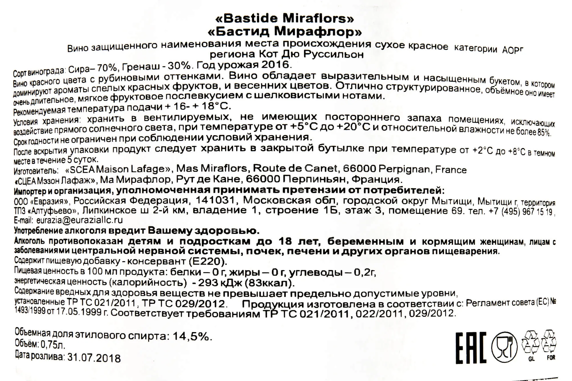 Бастид Мирафлор Кот Дю Руссильон AOP 2016 0.75