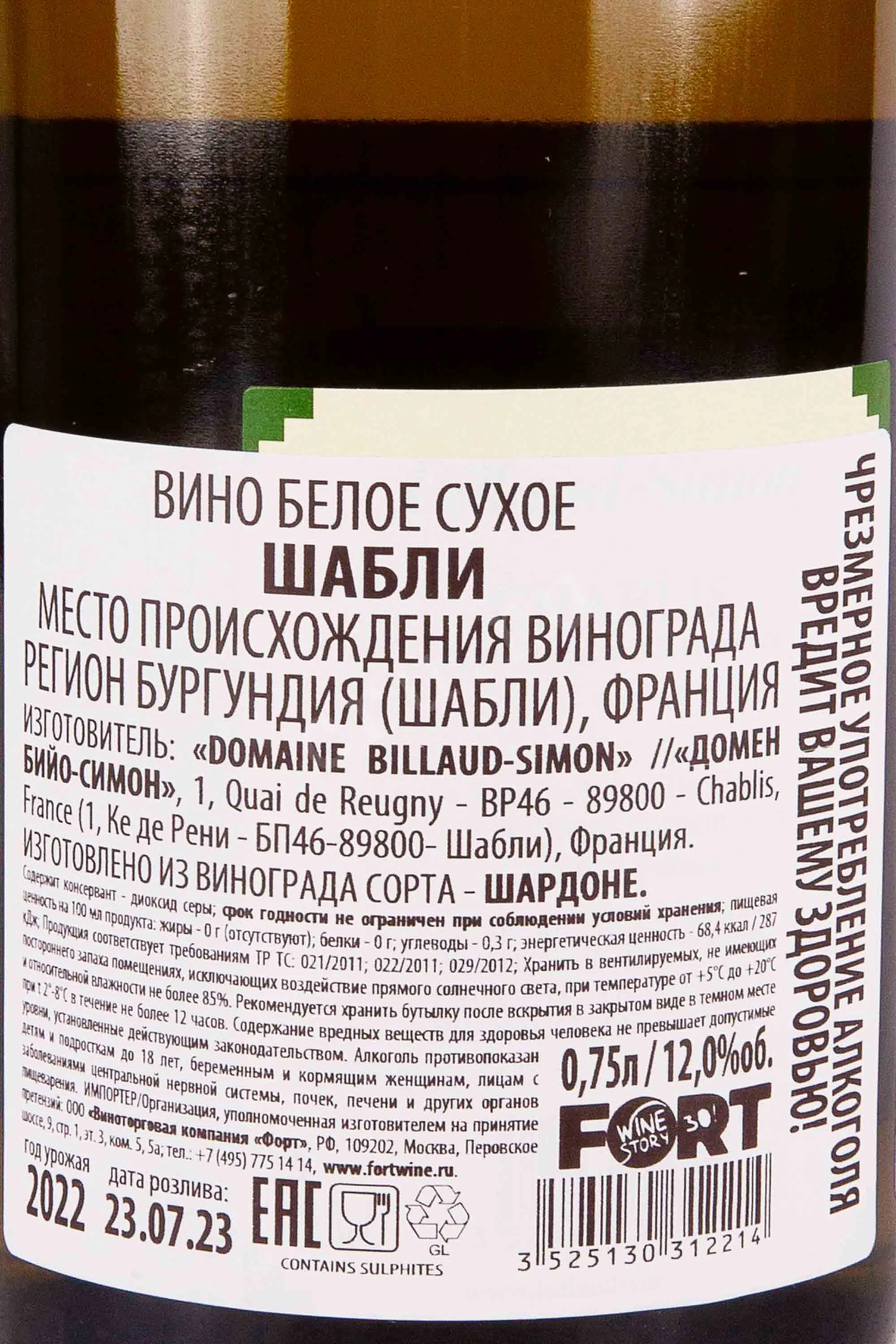 Вино Billaud-Simon Chablis 2022 0.75 л