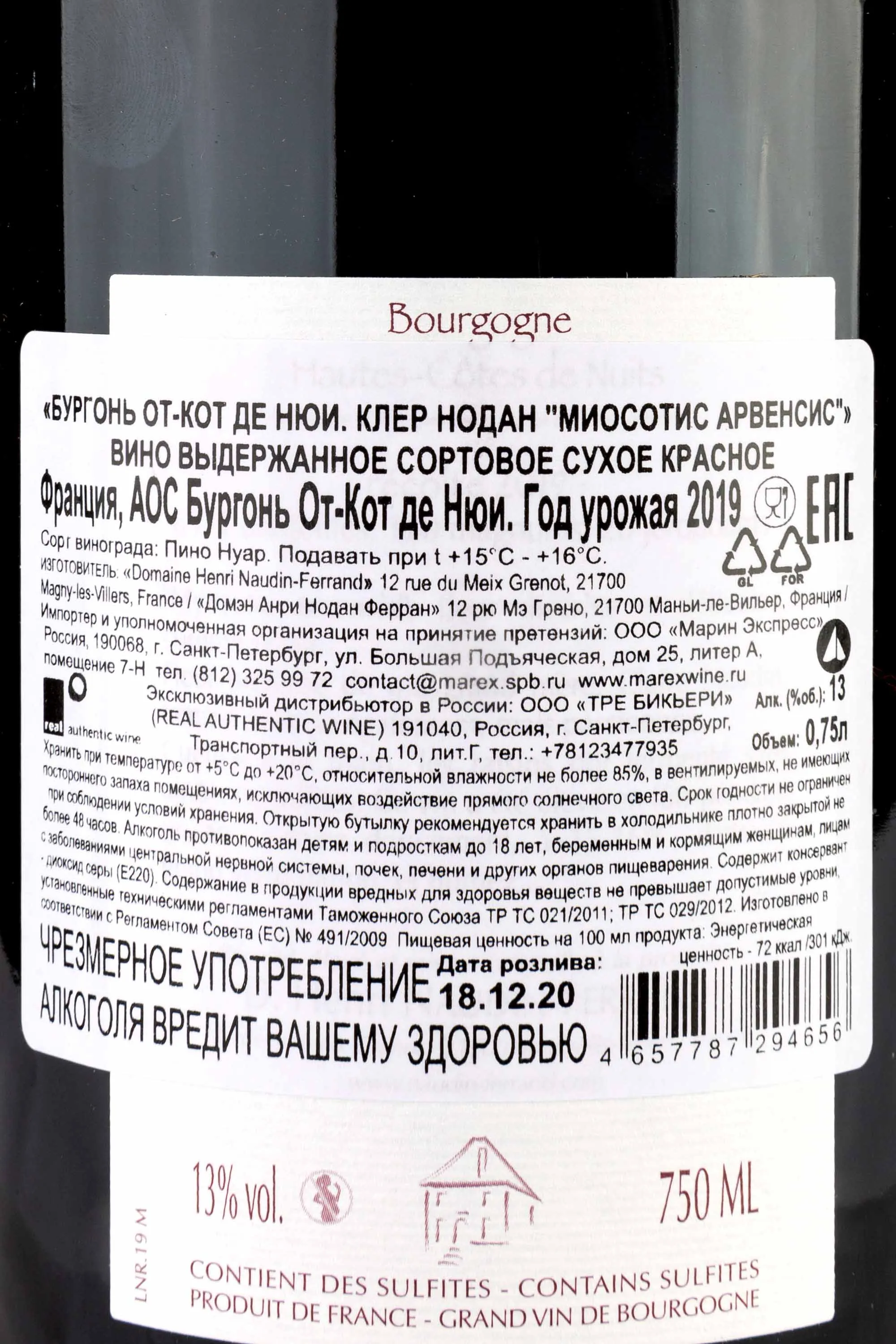 Бургонь От-Кот де Нюи Клер Нодан Миосотис Арвенсис 2019 0.75