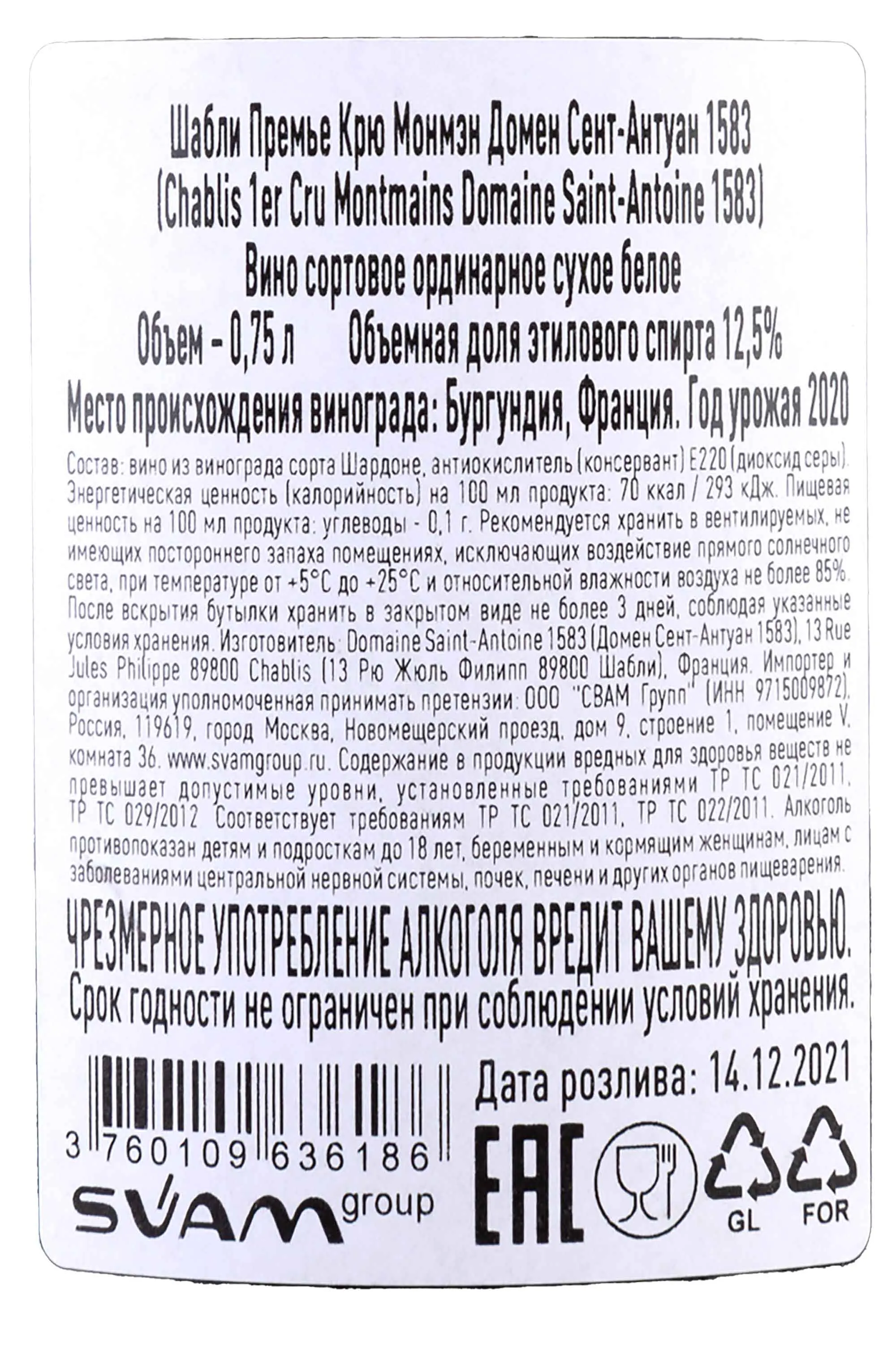 Saint-Antoine Chablis 1er Cru Le Montmains Clos 0.75 л купить - Французское вино Домен Сент-Антуан Шабли Премье Крю Монмэн цена в магазинег. Москва, ул. Профсоюзная, д. 16/1010:00-22:00 Ежедневно+7 (495) 920-20-02info@cru.ru