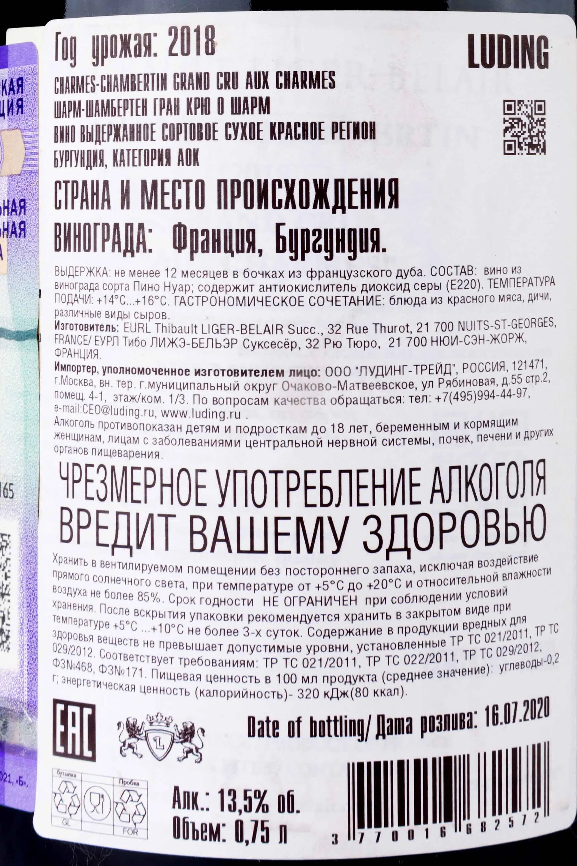 Thibault Liger-Belair Charmes-Chambertin Grand Cru Aux Charmes 2018 0.75 л купить - Французское вино Тибо Лижэ-Бельэр Шарм-Шамбертен Гран Крю О Шарм цена в магазине г. Москва, ул. Профсоюзная, д. 16/10 10:00-22:00 Ежедневно +7 (495) 920-20-02 info@cru.ru