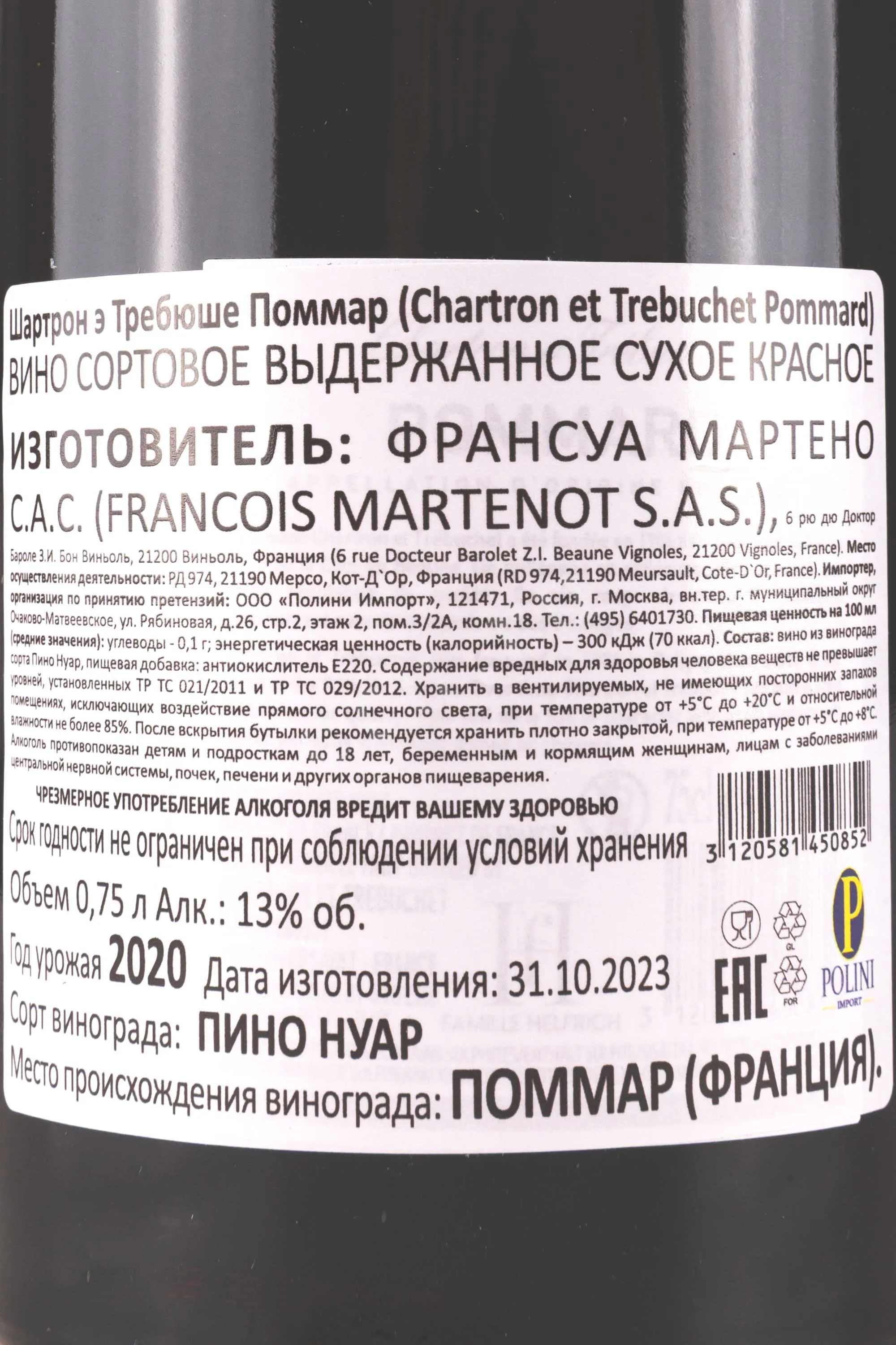 Вино Chartron et Trebuchet Pommard 2020 0.75 л