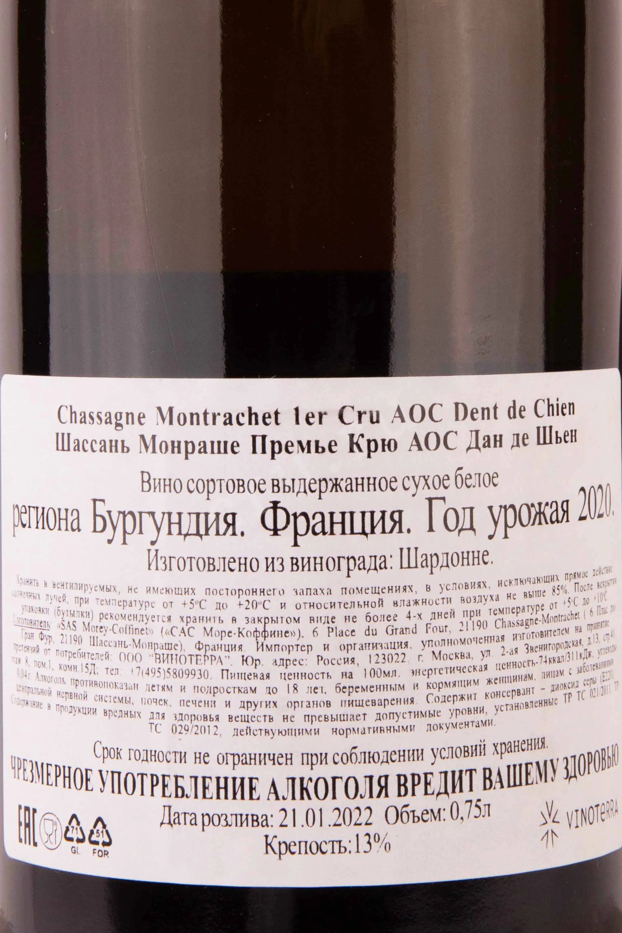 Chassagne Montrachet 1er Cru Dent de Chien 2020 0.75 л купить - Французское вино Шассань Монраше Премье Крю АОС Дан де Шьен цена в магазинег. Москва, ул. Профсоюзная, д. 16/1010:00-22:00 Ежедневно+7 (495) 920-20-02info@cru.ru