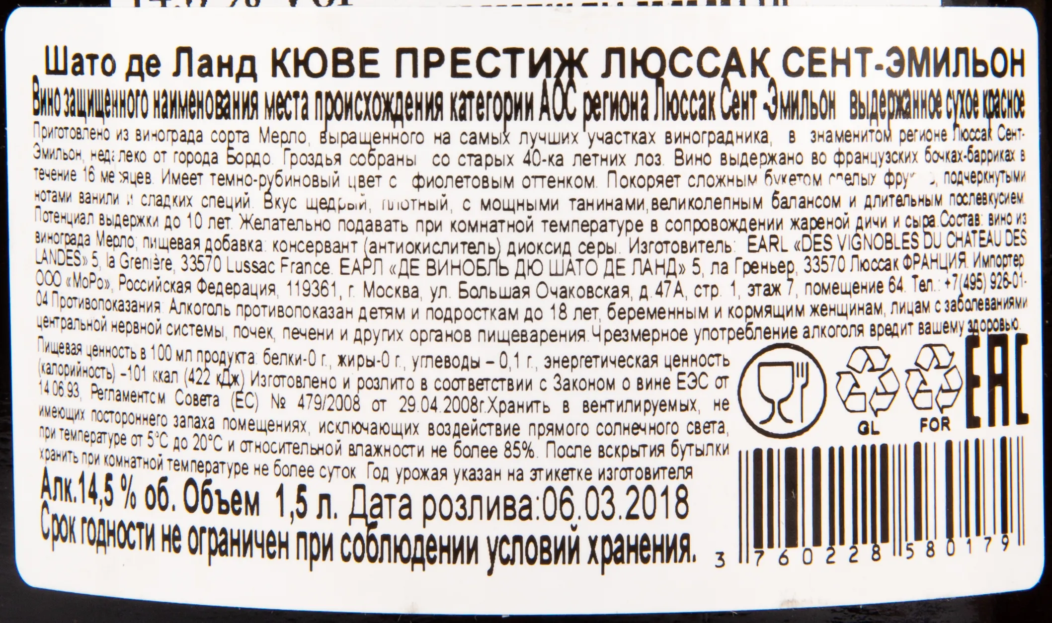 Либурне - это винный субрегион на северо-востоке региона Бордо. Он славится своими красными винами, в которых преобладают сорта Мерло и Каберне Фран, а также Мальбек и Пти Вердо. Вино из Либурне обычно богато и плотно, с тонкими нотами специй и фруктовой кислотой для более жизнерадостного финала.