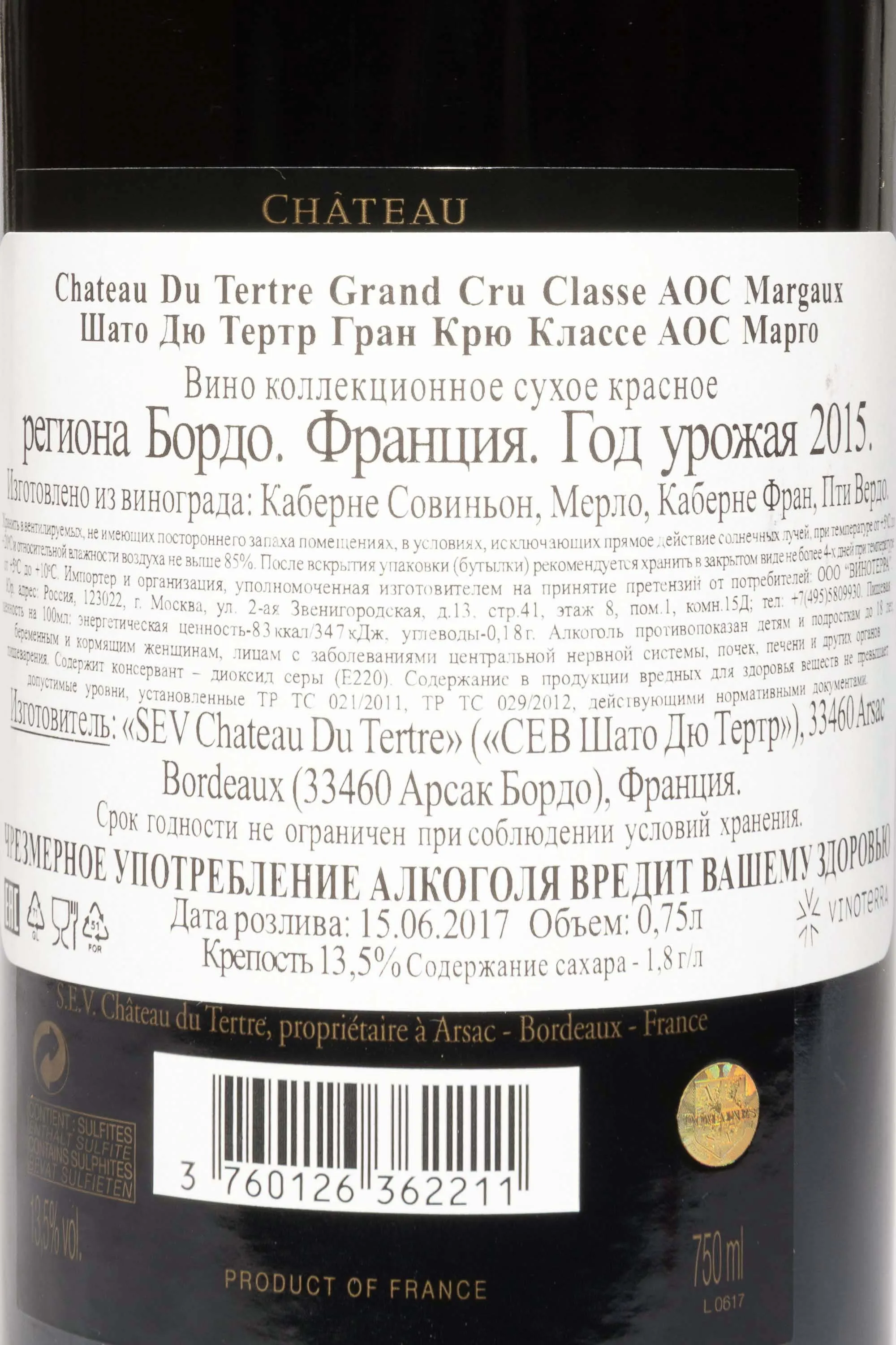 Красное сухое вино Chateau du Tertre Grand Cru Classe Margaux AOC 2015 г. 0,75 л производится в историческом шато, известном с XVI века и закрепленном в классификации 1855 года как пятое великое крю. Виноградники расположены в апелласьоне Марго, где гравийные почвы с высоким содержанием кварца и песка обеспечивают оптимальный дренаж. Лозы растут в условиях умеренного морского климата региона Медок, получая достаточно солнца и влаги. Урожай 2015 года считается выдающимся: весна была теплой, лето сухим, а сентябрь принес мягкие дожди, что позволило ягодам набрать гармоничную кислотность и высокую концентрацию сахаров. Напиток созревал в дубовых барриках около 16 месяцев, из которых примерно половина — новые, что придало вкусу купажа сложность и благородные тона.