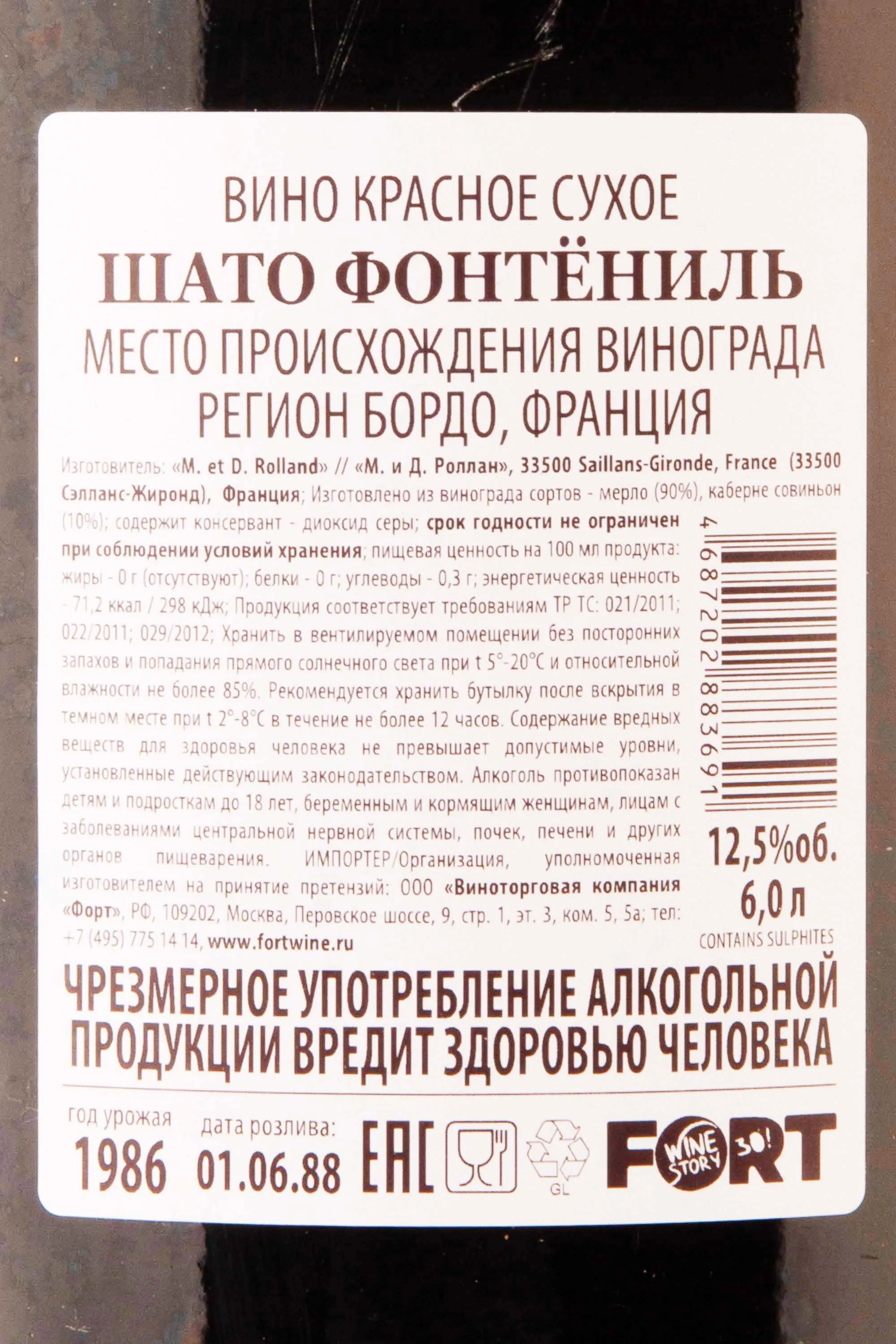 Chateau Fontenil Rolland Collection 1986 6 л купить - Французское вино Шато Фонтёниль Роллан Коллекция в подарочной упаковке цена в магазине г. Москва, ул. Профсоюзная, д. 16/10 10:00-22:00 Ежедневно +7 (495) 920-20-02 info@cru.ru