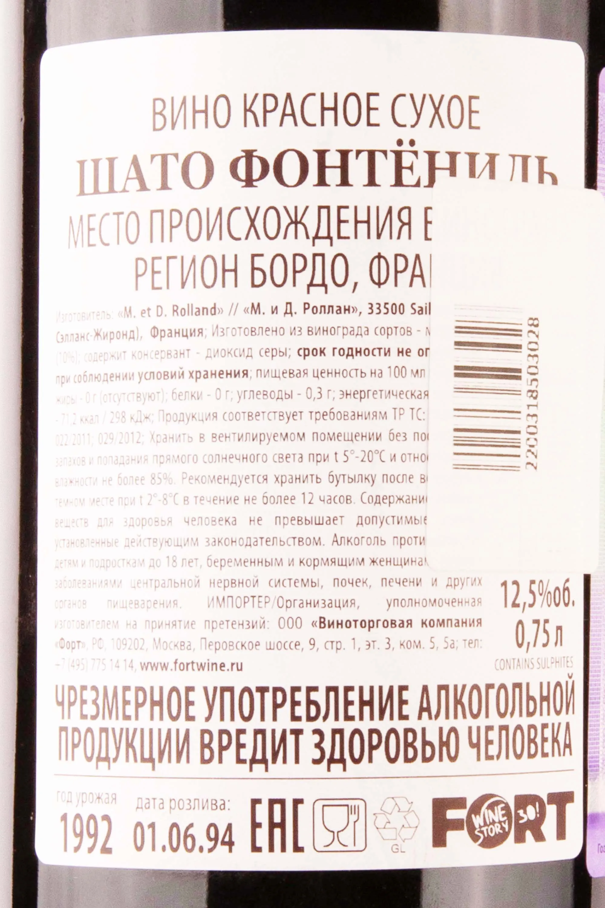 Шато Фонтёниль Роллан Коллекция 1992 0.75