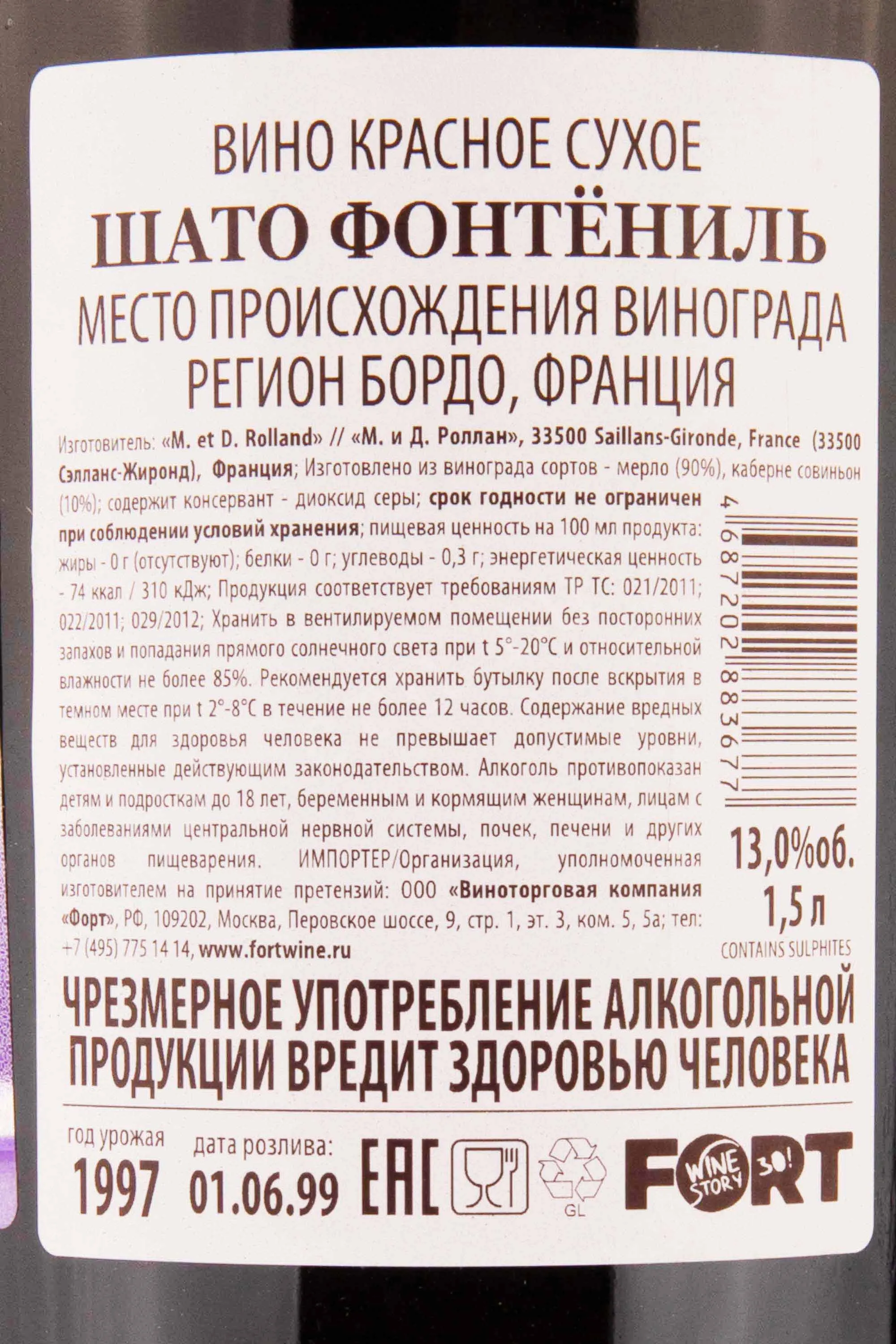Шато Фонтёниль М. и Д. Роллан 1997 1.5