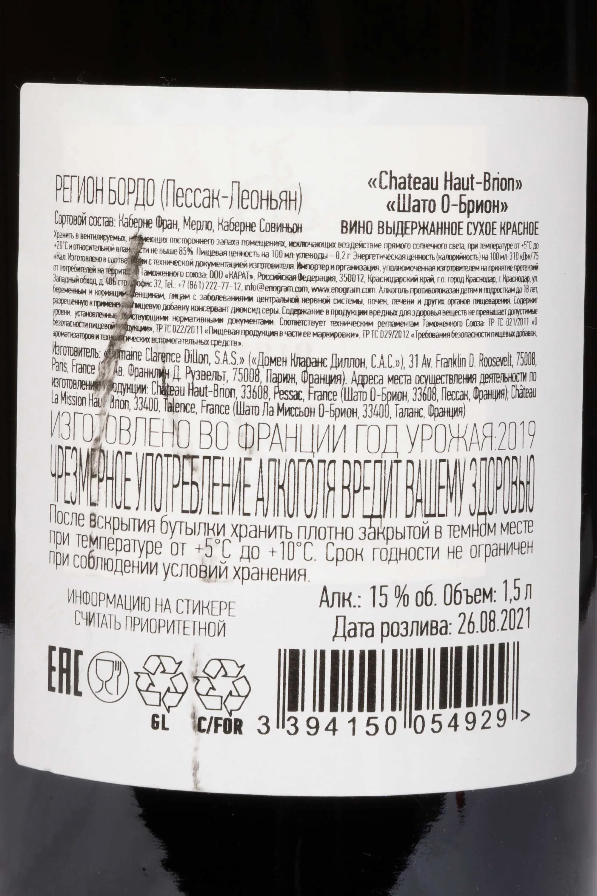 Вино Chateau Haut-Brion Premier Grand Cru Classe Pessac-Leognan AOC 2019 1.5 л — образец исключительного мастерства виноделов, воплощение традиций Бордо, созданный в старейшем шато региона. Терруар представляет собой уникальное сочетание гравийных почв, богатых кварцем, и особого микроклимата коммуны Пессак-Леоньян, формирующего характер напитка. Урожай собирают исключительно вручную, отбирая только зрелые ягоды, после чего тщательно сортируют. Алкогольное брожение проходит в дубовых чанах, что позволяет максимально раскрыть сложность и многогранность букета. После выдержки в новых французских барриках не менее 18 месяцев напиток приобретает утонченную структуру, шелковистость и элегантность.