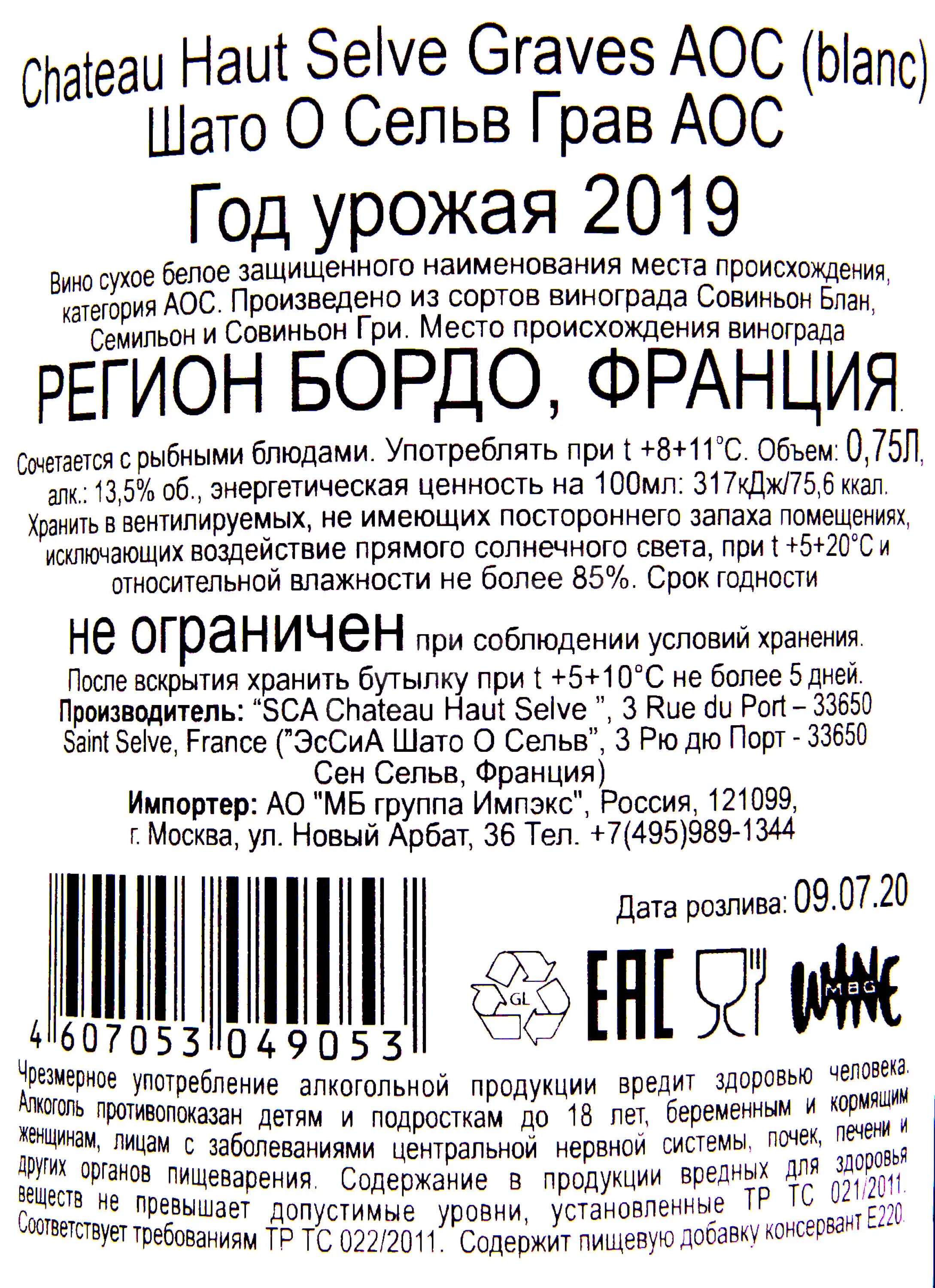 Chateau Haut Selve Graves AOC 0.75 л купить - Французское вино Шато О Сельв Грав цена в магазине г. Москва, ул. Профсоюзная, д. 16/10 10:00-22:00 Ежедневно +7 (495) 920-20-02 info@cru.ru