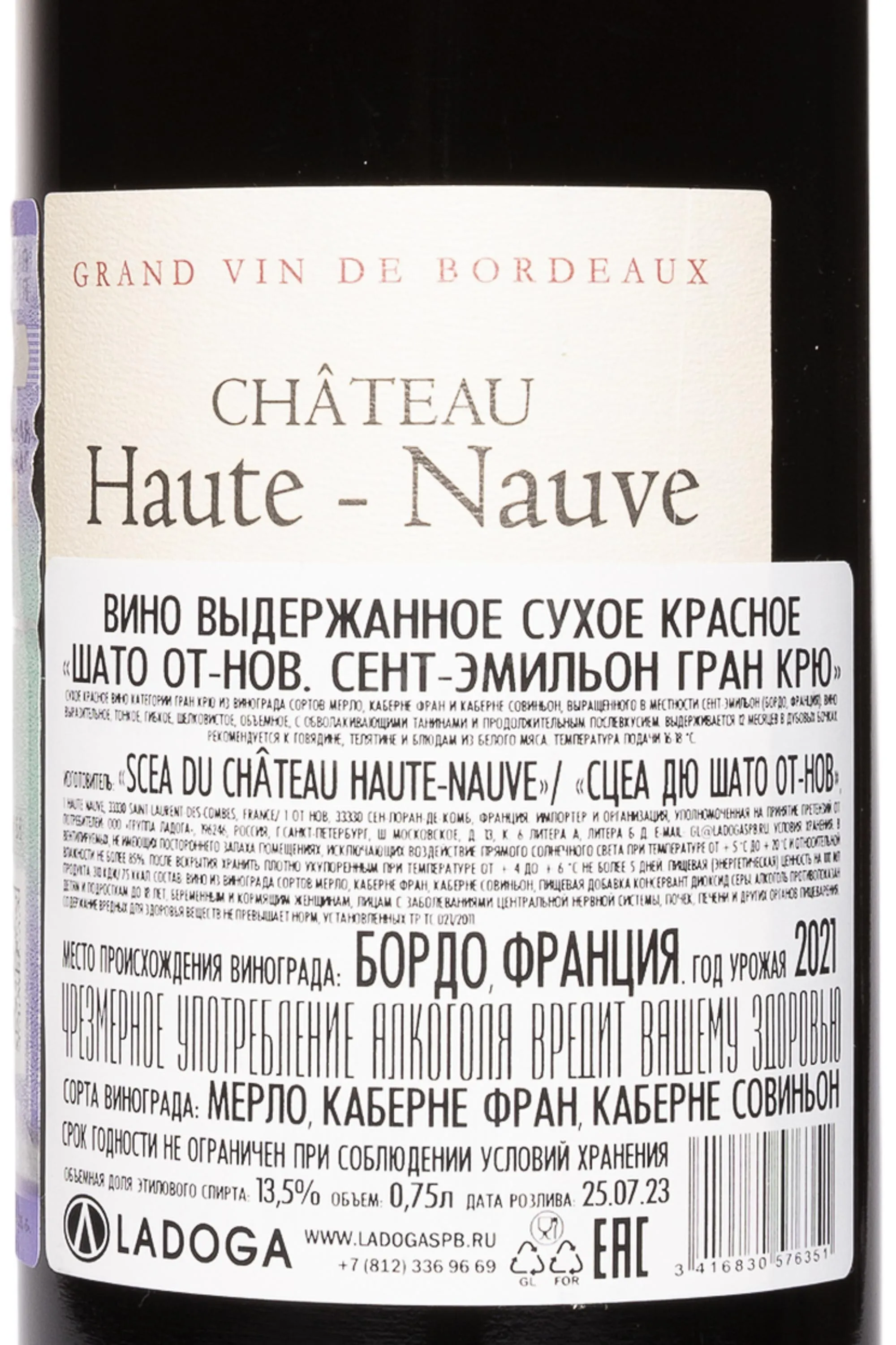 Красное сухое вино Chateau Haute-Nauve Saint-Emilion Grand Cru AOC 2021 года 0,75 л создано в знаменитом бордоском апелласьоне Сент-Эмильон, который расположен на правом берегу реки Жиронды. Терруар отличается богатой глиняно-известковой почвой и мягким климатом с умеренной влажностью, что позволяет винограду достичь оптимальной зрелости. 2021 год был непростым: весенние заморозки и дожди уменьшили объем сбора, но повысили концентрацию вкуса и свежесть вин. Ферментация проходила традиционно в стальных резервуарах при контролируемой температуре с последующей малолактической переработкой. Выдержка длилась около 12 месяцев в дубовых бочках, часть из которых — новые. Это вино демонстрирует классическую элегантность стиля Saint-Emilion Grand Cru с гармонией между фруктовостью и дубовой структурой. Критики отмечают сбалансированность и потенциал для дальнейшего развития в бутылке.