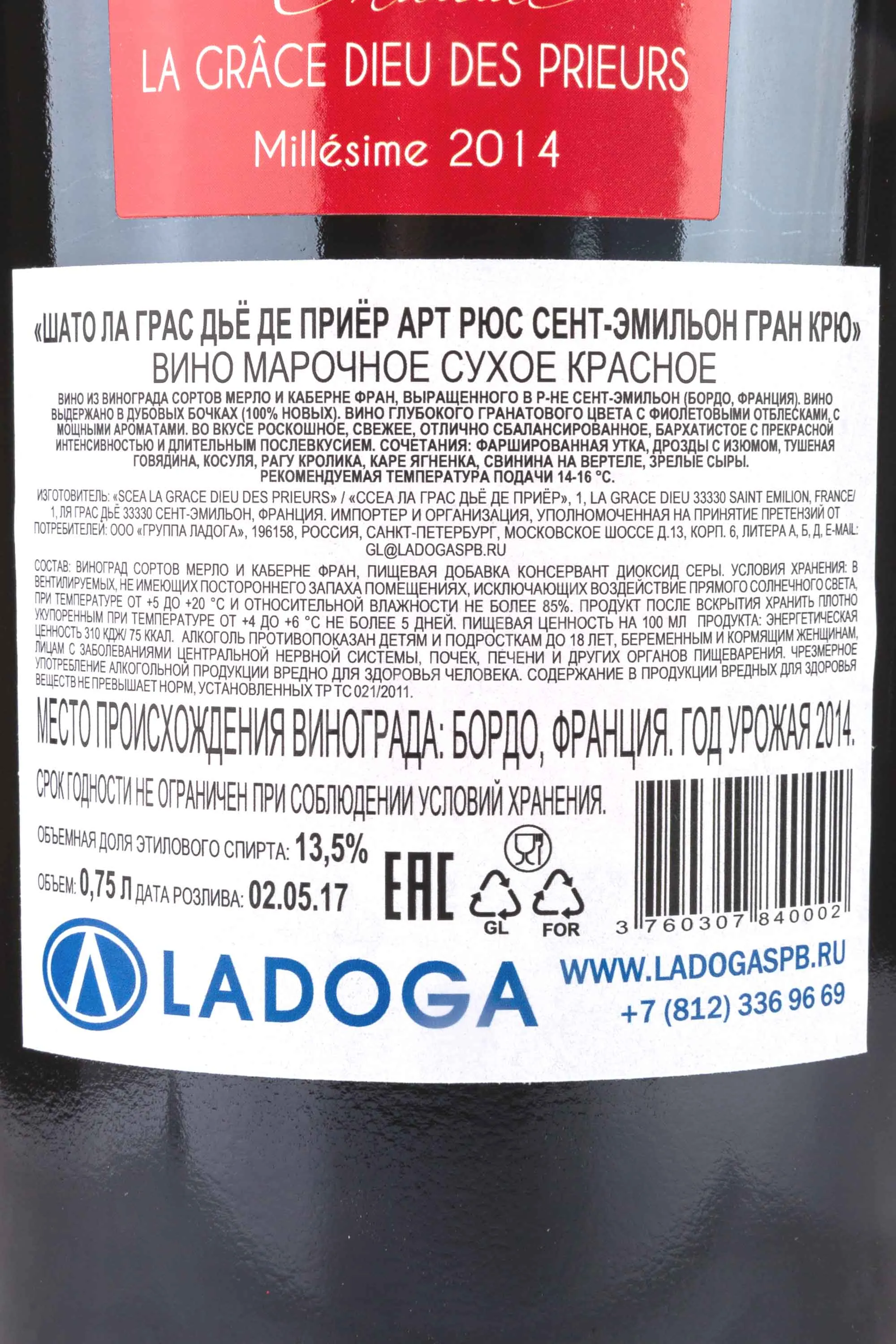Шато Ла Грас Дьё де Приёр Арт Рюс Сент-Эмильон Гран Крю деревянная упаковка набор из 6 бутылок 2014 0.75