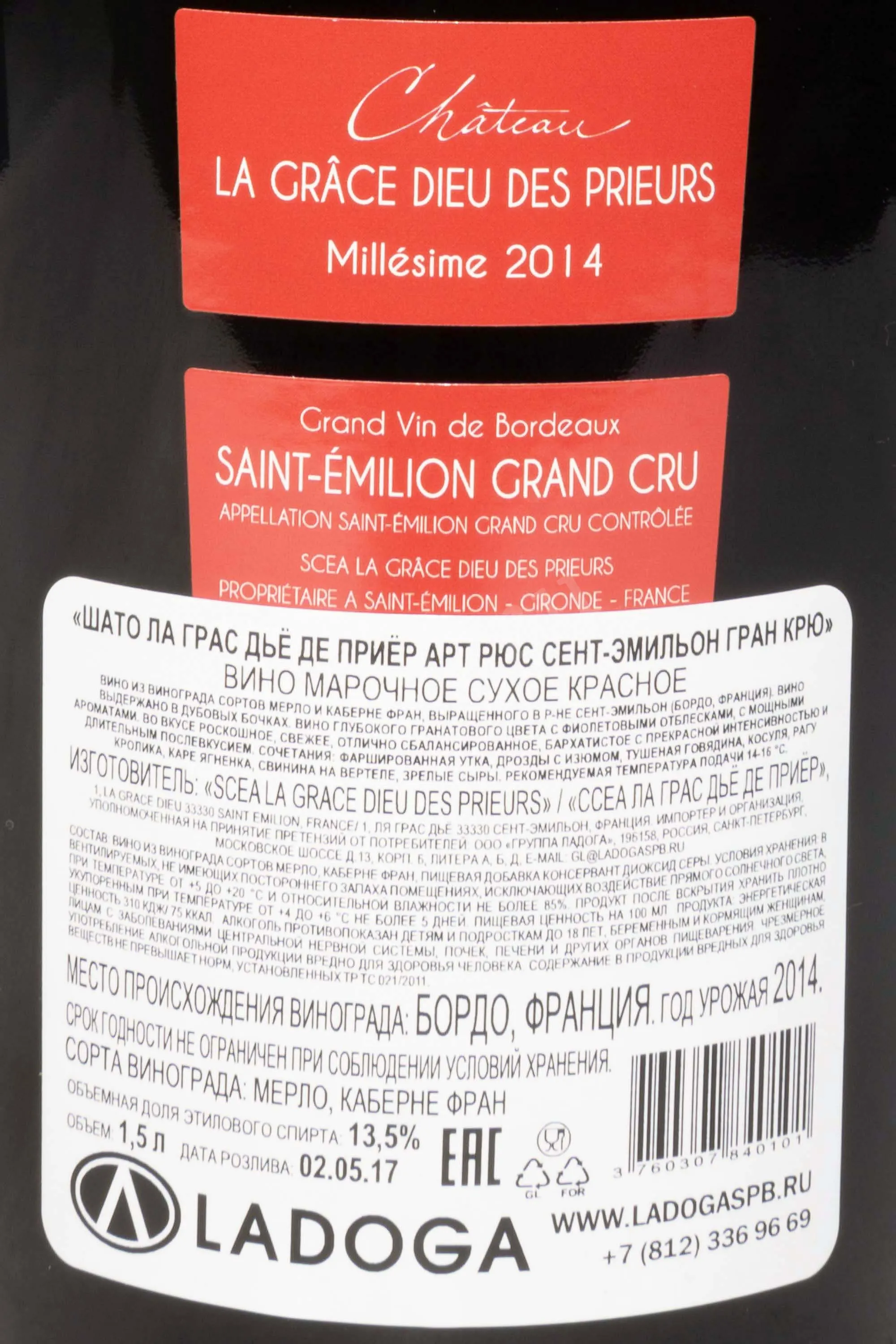 Вино Chateau La Grace Dieu des Prieurs Saint-Emilion Grand Cru AOC in gift box 2014 0.75 л представляло собой редкий образец классики Бордо, созданный в ограниченном тираже. Оно было произведено на винодельне с многовековыми традициями, где применялись современные методы винификации в сочетании с уважением к терруару. Виноградники находились на плато Сент-Эмильона, в зоне с глинисто-известняковыми почвами, которые обеспечивали равномерное созревание ягод и их богатую ароматическую палитру. Урожай собирали вручную, с последующей строгой сортировкой ягод, что позволяло сохранить исключительное качество. Ферментация проходила в стальных емкостях с контролем температуры, а выдержка происходила в новых дубовых бочках, что придавало напитку глубину и благородные оттенки пряностей.