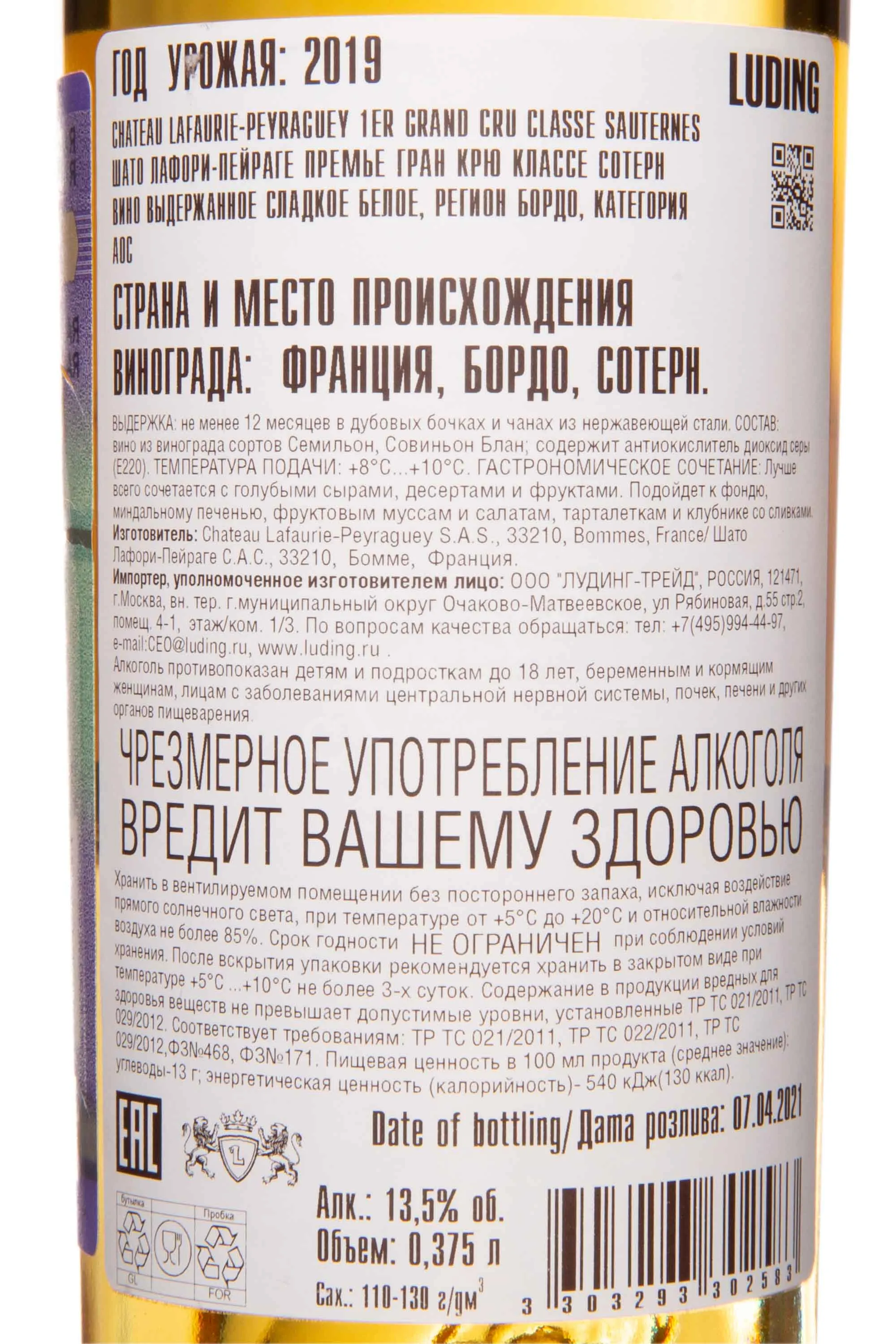Вино Chateau Lafaurie-Peyraguey Premier Grand Cru Classe Sauternes AOC 2019 0.375 л создано из тщательно отобранных вручную ягод, собранных в сердце знаменитого винодельческого региона Сотерн. Урожай бережно собирали многократно, выбирая грозди с оптимальной степенью поражения благородной плесенью Botrytis cinerea, благодаря которой напиток приобрёл неповторимый характер. Для ферментации использовались традиционные дубовые бочки, где сусло неспешно вызревало и наполнялось сложными оттенками вкуса и аромата. Особые почвы региона, состоящие из гравия и глины, обеспечили элегантность и выразительную минеральность готового напитка.