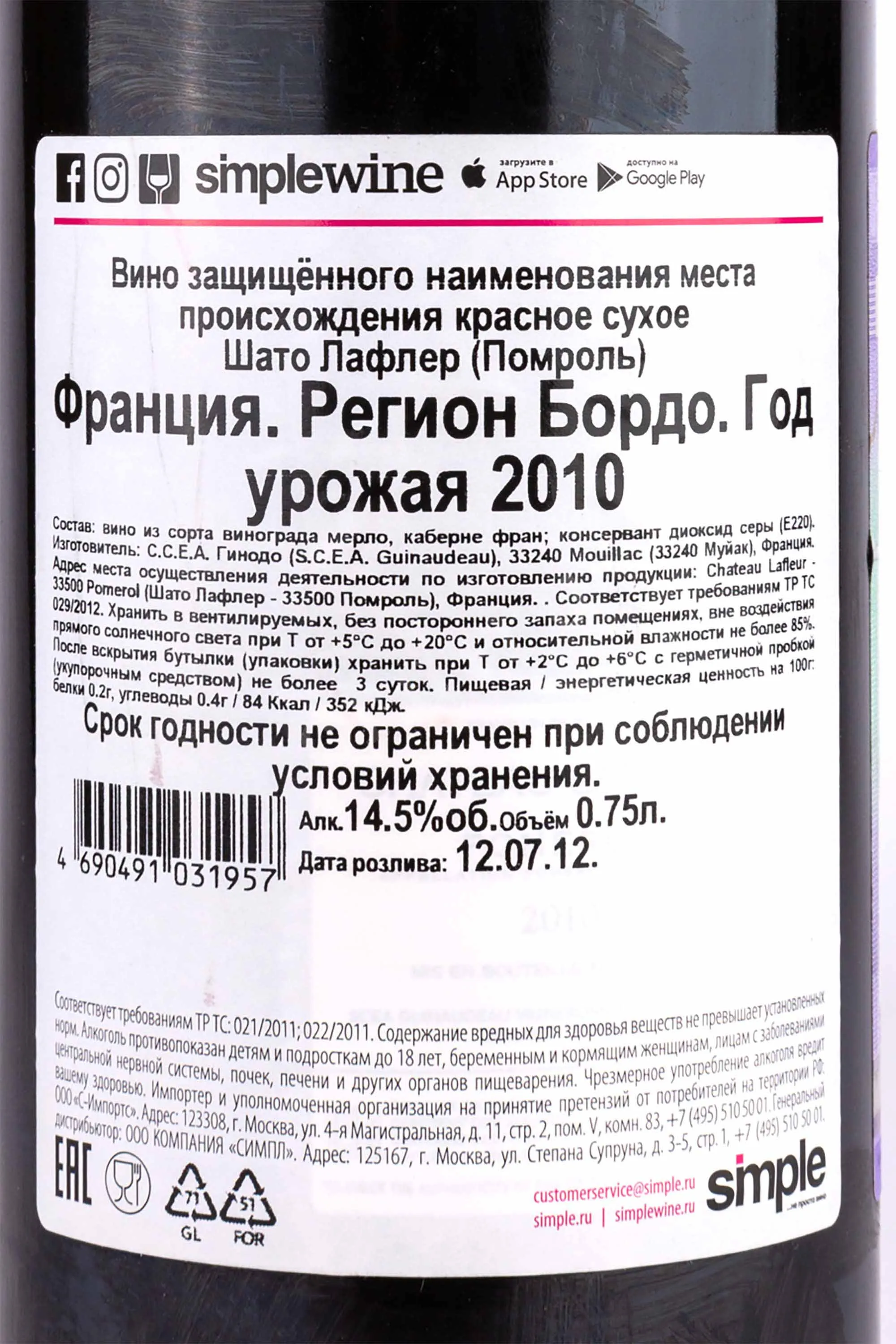 Шато Лафлер Помроль 2010 0.75