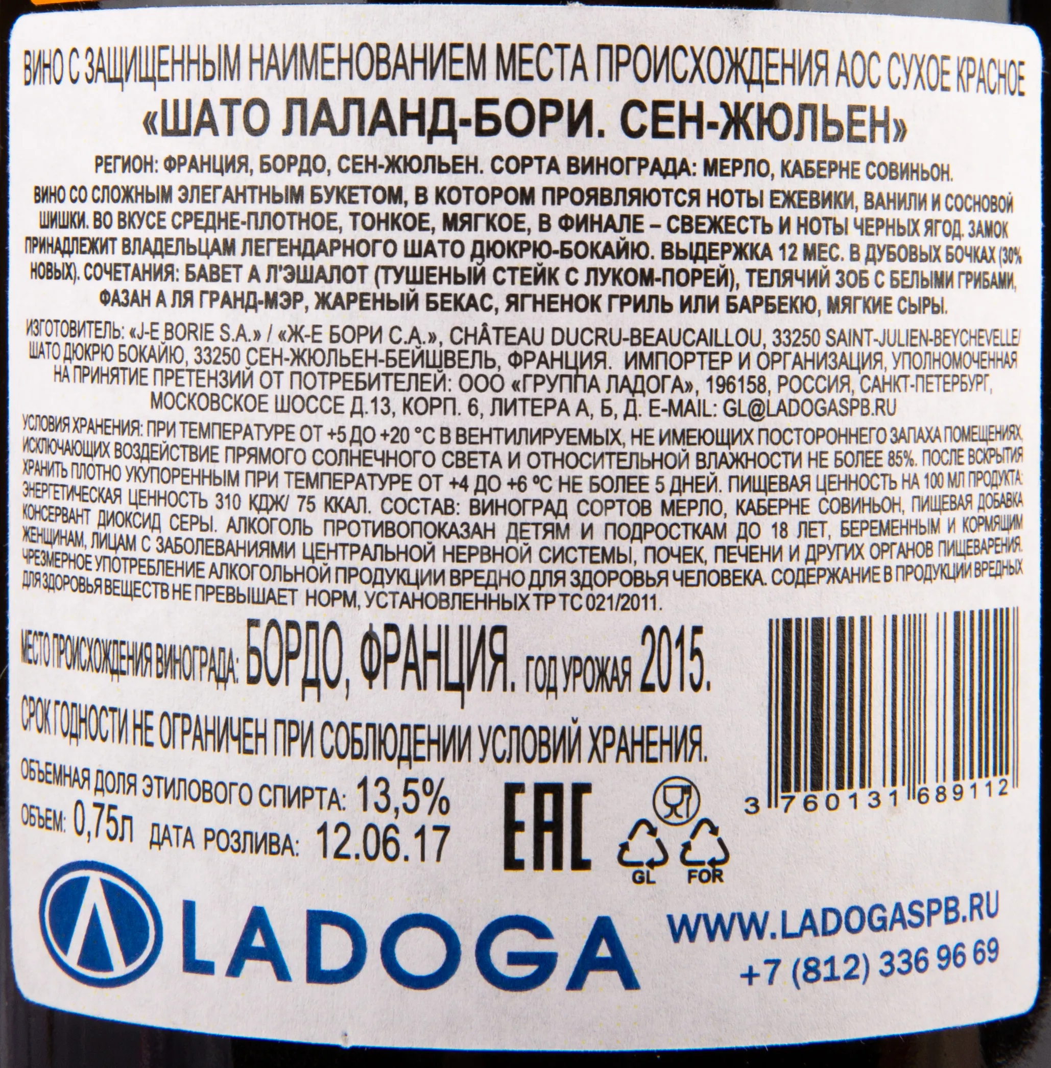 Шато Лаланд Бори Сен Жюльен 2015 0.75