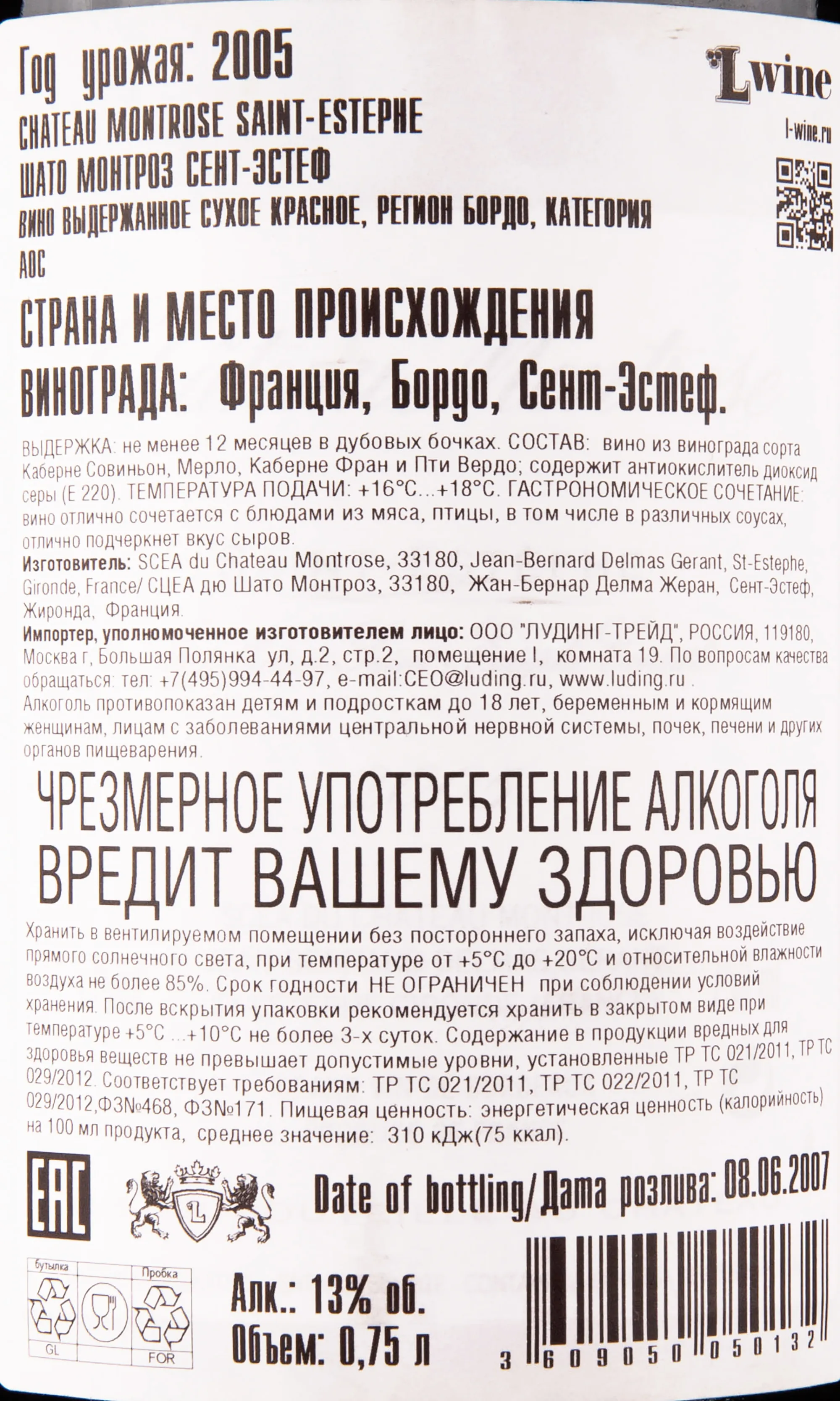 Шато Монтроз Сент-Эстеф Гран Крю Классе 2005 0.75