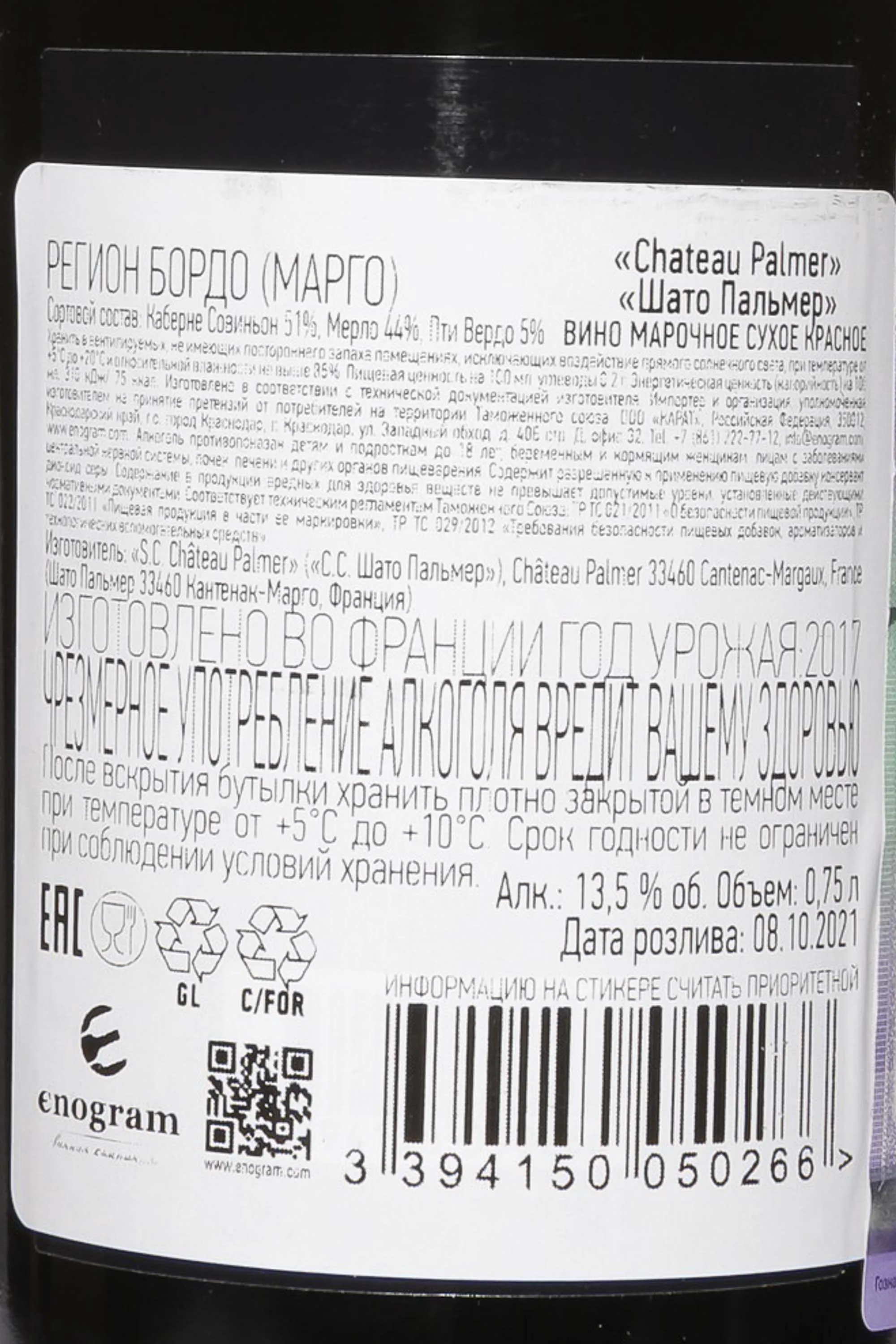 Красное сухое вино Chateau Palmer Margaux 2017 года 0,75 л создано в одном из самых престижных терруаров Бордо. Виноградники располагаются на гравийных почвах региона Марго, что придает вину особую глубину и утонченность. 2017 год был непростым: весенние заморозки повредили часть лоз, однако лето выдалось солнечным и сухим, что обеспечило высокое качество сохранившихся ягод. Ручной сбор урожая проходил с 20 по 29 сентября в благоприятных условиях. Виноград подвергался строгому отбору и оптической селекции. Алкогольная ферментация и мацерация осуществлялись в стальных емкостях отдельно для каждого участка. Далее следовала выдержка в дубовых бочках, продолжавшаяся 22 месяца. Винтаж 2017 года получил 97/100 баллов от Роберта Паркера («Выдающееся вино»), 17,5/20 от Джансис Робинсон и 95/100 от Wine Enthusiast («Необыкновенное»). Потенциал хранения — около 20 лет.