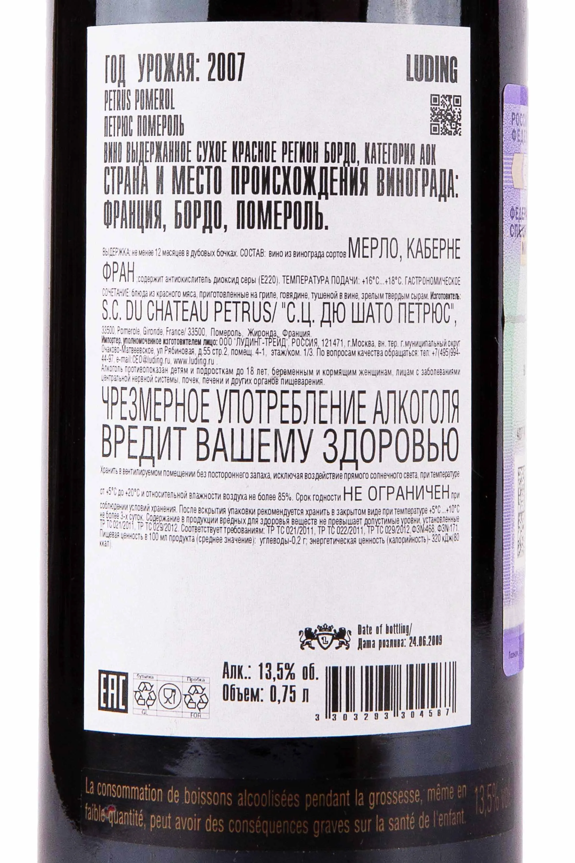 Изготовитель: С.Ц. Дю Шато Петрюс