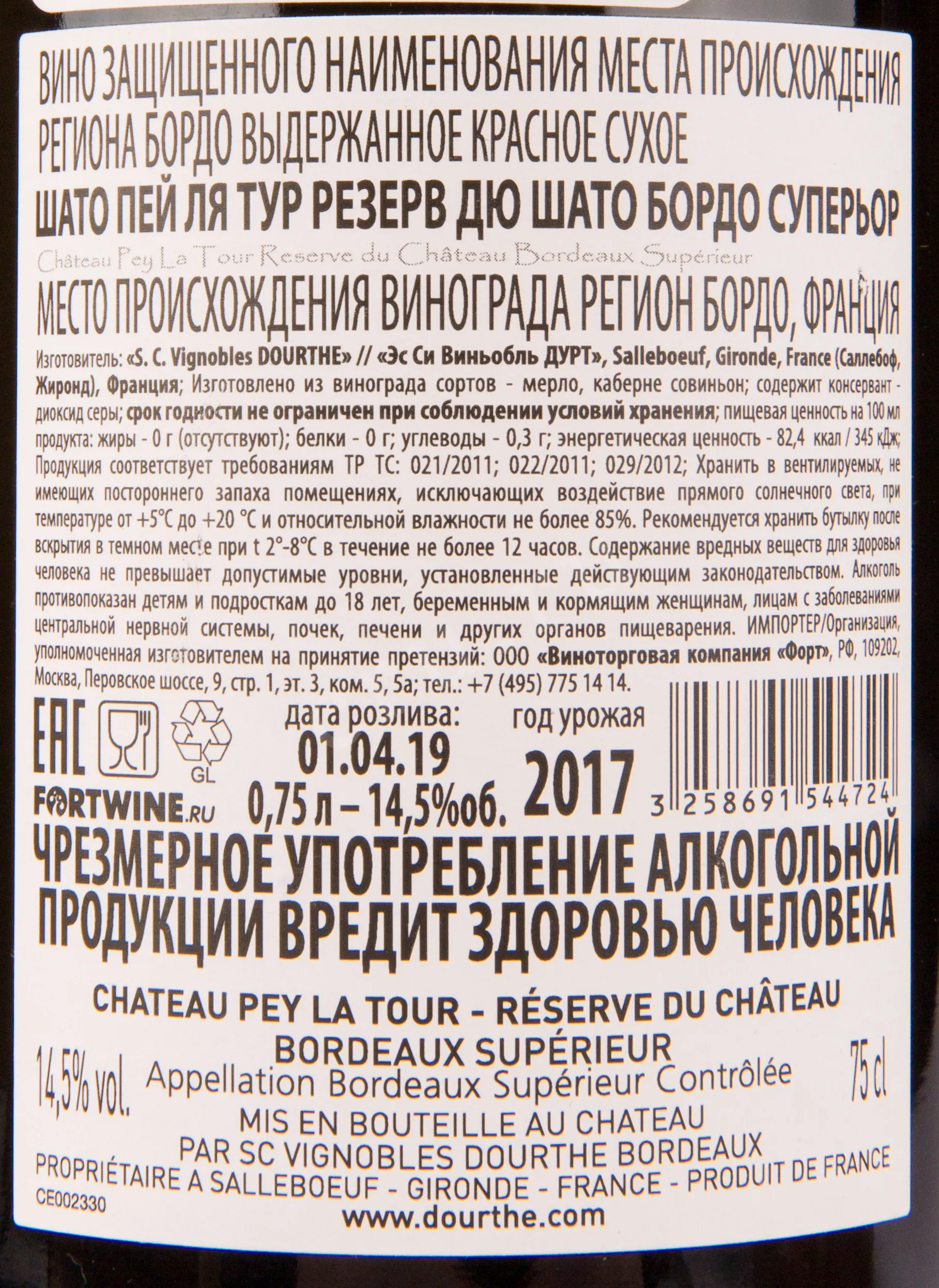 Chateau Pey La Tour Reserve du Chateau Bordeaux Superieur 0.75 л купить - Французское вино Шато Пей Ля Тур Резерв Дю Шато Бордо Суперьор цена в магазине г. Москва, ул. Профсоюзная, д. 16/10 10:00-22:00 Ежедневно +7 (495) 920-20-02 info@cru.ru