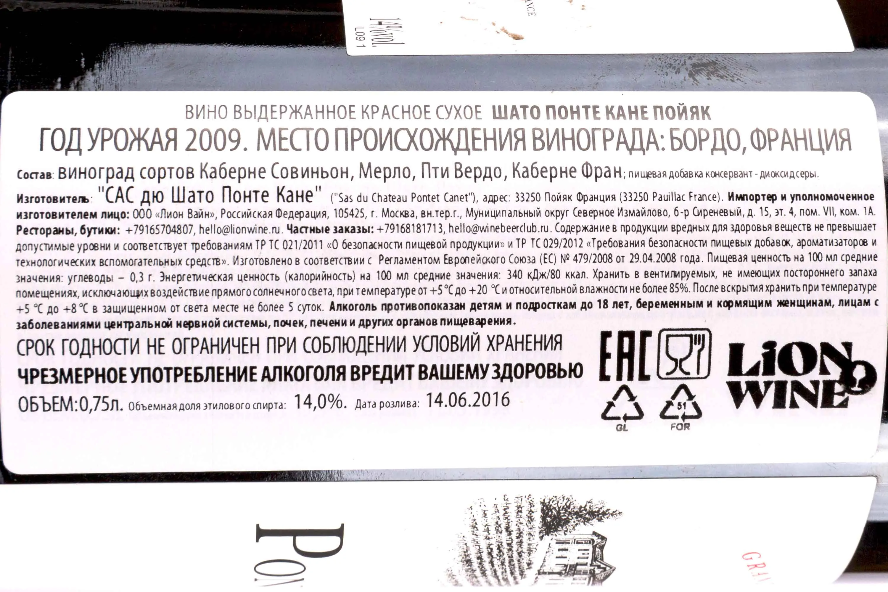 Изготовитель: "САС дю Шато Понте Кане"