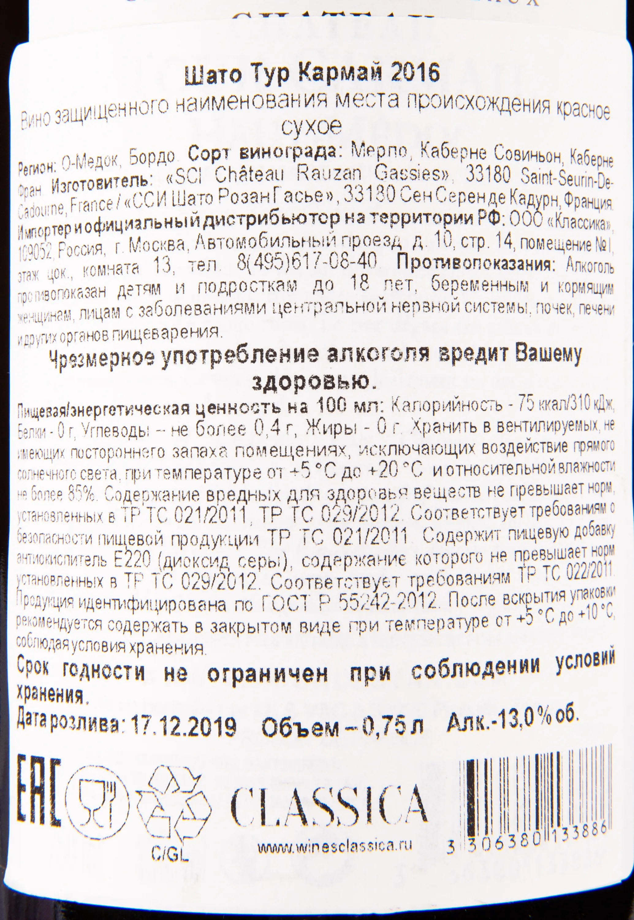 Chateau Tour Carmail 2016 0.75 л купить - Французское вино Шато Тур Кармай цена в магазине г. Москва, ул. Профсоюзная, д. 16/10 10:00-22:00 Ежедневно +7 (495) 920-20-02 info@cru.ru