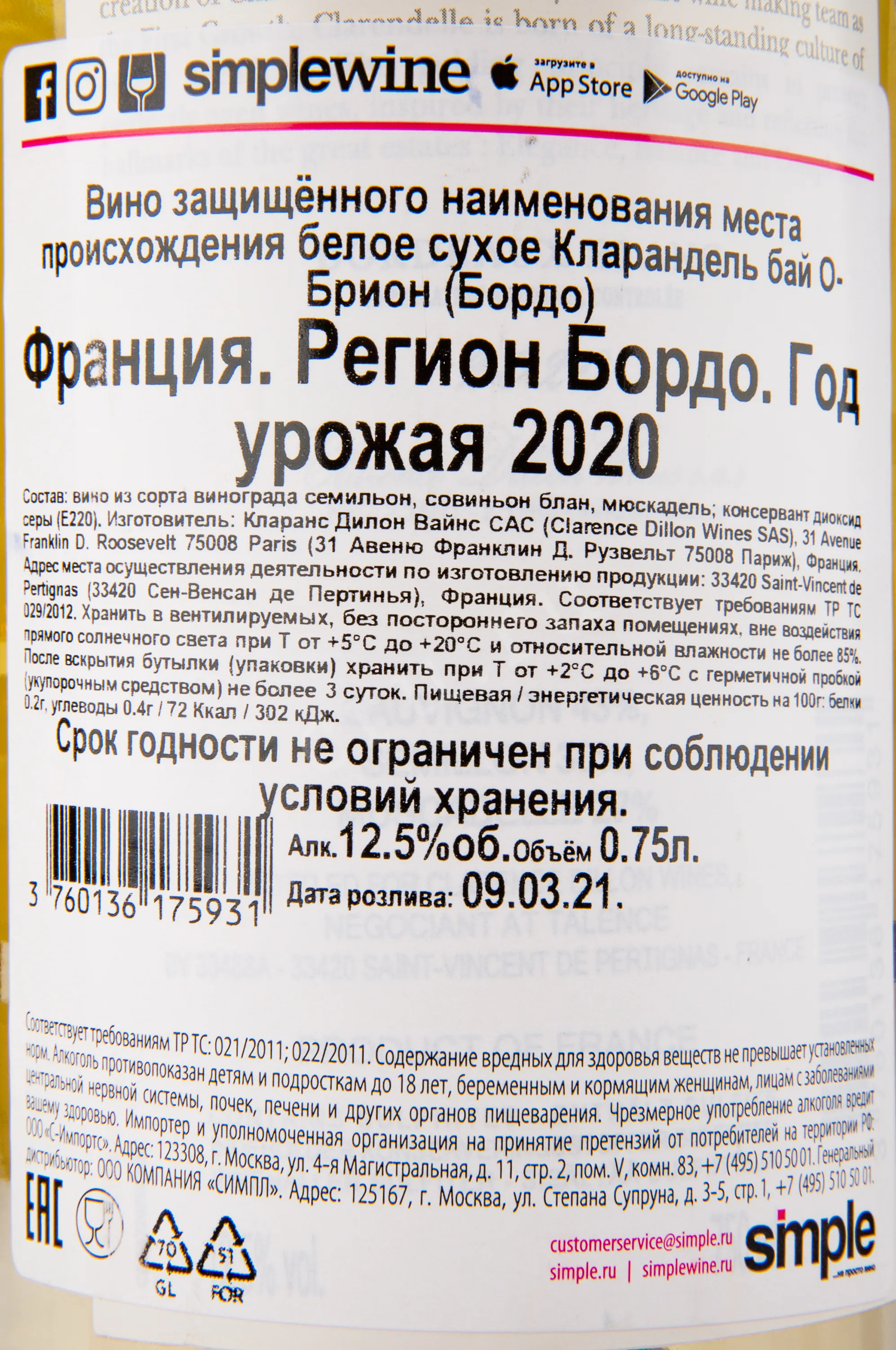 Вино Clarence Dillon Clarendelle by Haut-Brion 2020 г. 0.75 l – это изысканный французский алкоголь, созданный из винограда, произрастающего в регионе Бордо. Белое сухое вино крепостью 12.5% создают с помощью непродолжительной холодной мацерации и ферментации в чанах из нержавеющей стали.