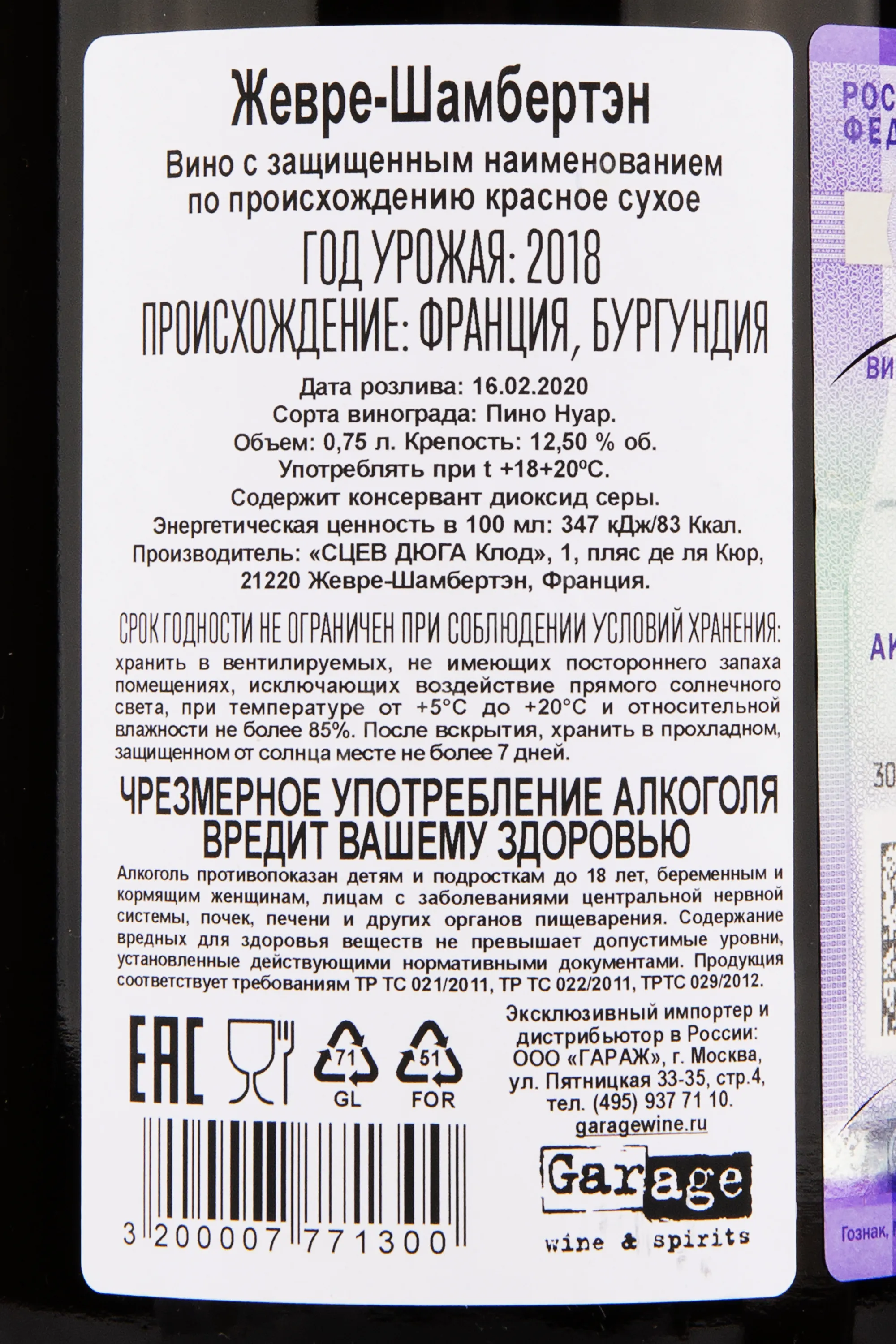 Claude Dugat Gevrey-Chambertin 2018 0.75 л купить - Французское вино Клод Дюга Жевре-Шамбертэн цена в магазинег. Москва, ул. Профсоюзная, д. 16/1010:00-22:00 Ежедневно+7 (495) 920-20-02info@cru.ru
