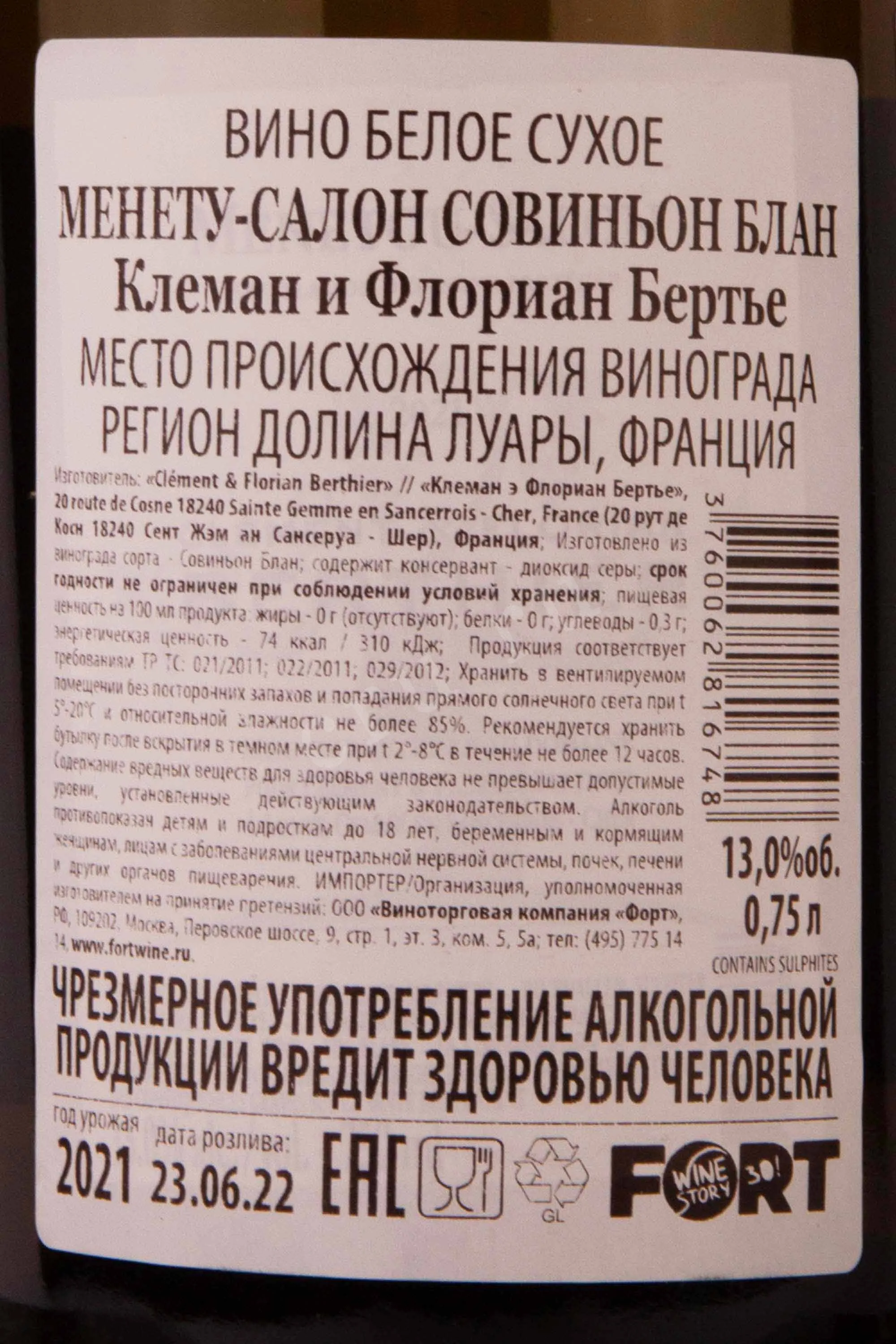 Клеман и Флориан Бертье Менету-Салон Совиньон Блан 2021 0.75