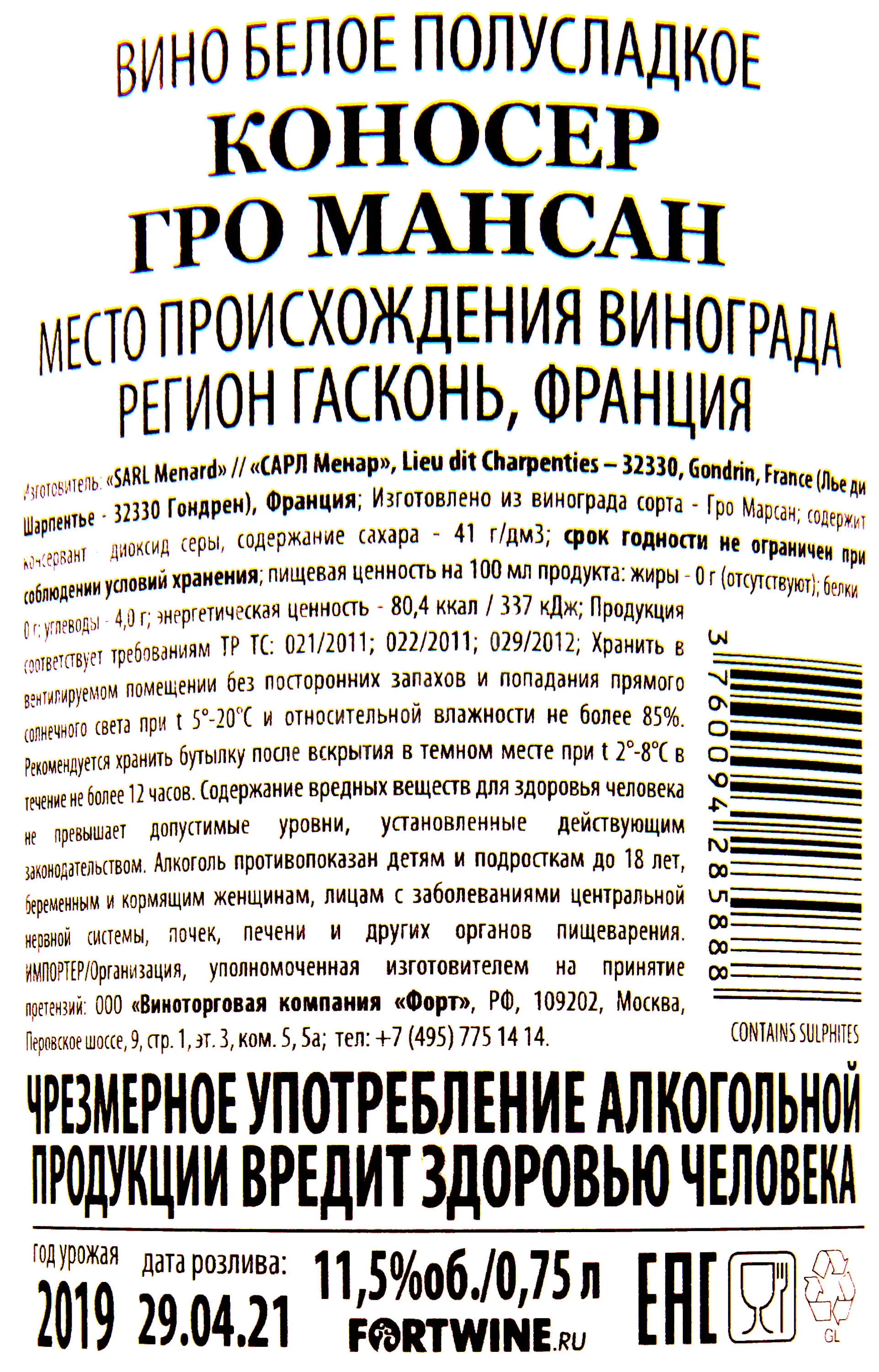 Белый сорт винограда, позднего периода созревания французского происхождения. Данный виноград используется, как для производства тихих вин, так и для коньячных виноматериалов. В основном культивируется в регионе Гасконь.