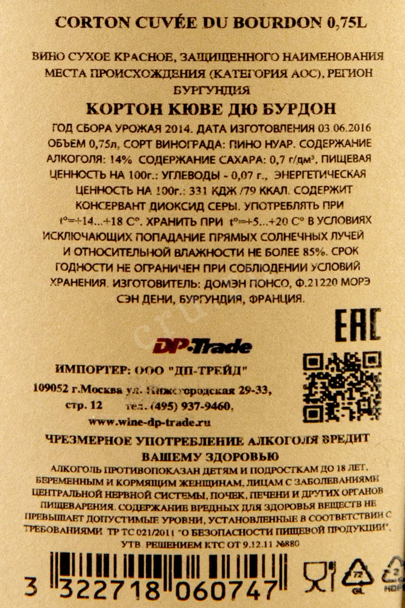 Corton Cuvee du Bourdon Domaine Ponsot 2014 0.75 л купить - Французское вино Кортон Кюве Дю Бурдон Домен Понсо цена в магазине г. Москва, ул. Профсоюзная, д. 16/10 10:00-22:00 Ежедневно +7 (495) 920-20-02 info@cru.ru