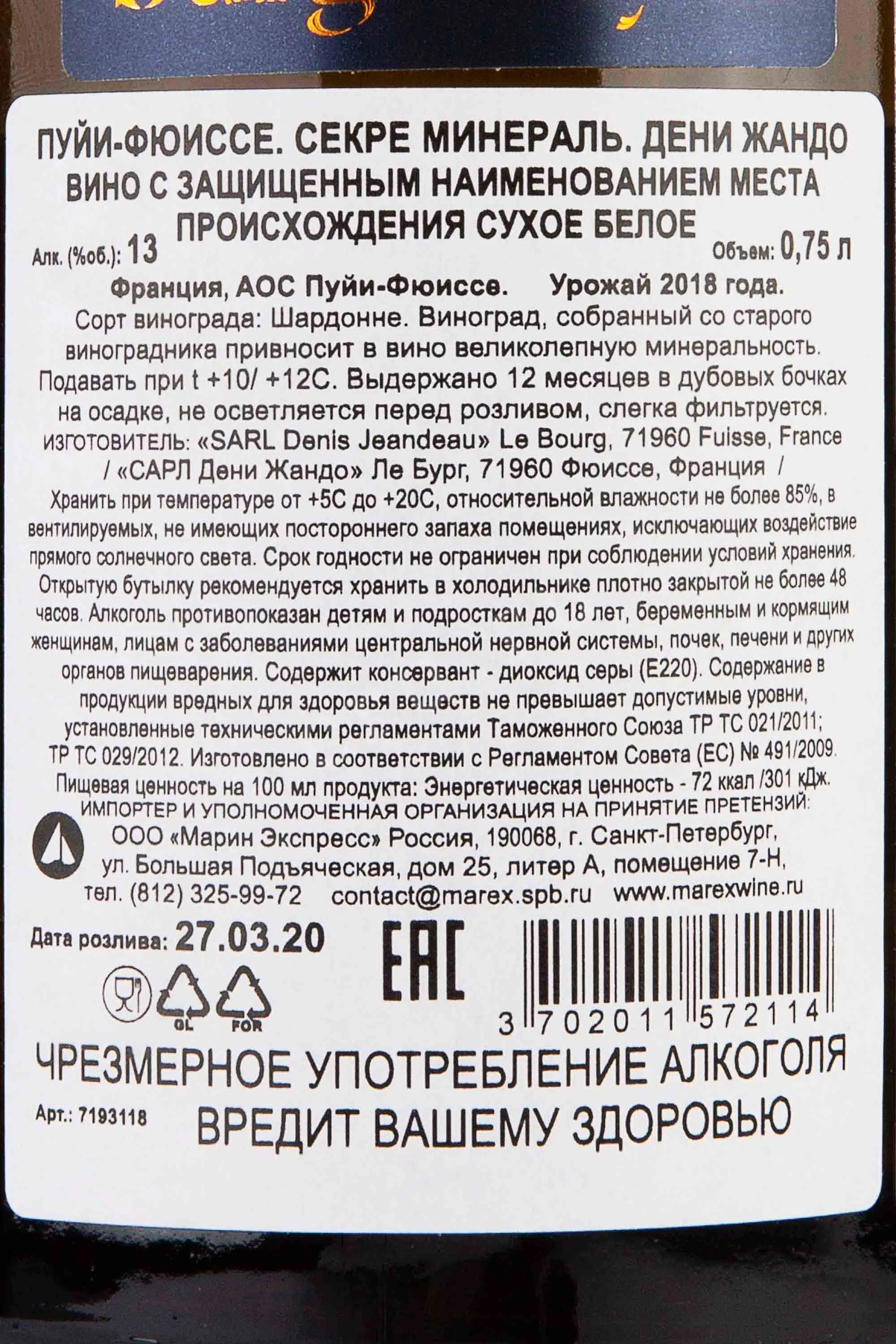 Denis Jeandeau Pouilly-Fuisse Secret Mineral 0.75 л купить - Французское вино Дени Жандо Пуйи-Фюиссе Секре Минераль цена в магазинег. Москва, ул. Профсоюзная, д. 16/1010:00-22:00 Ежедневно+7 (495) 920-20-02info@cru.ru