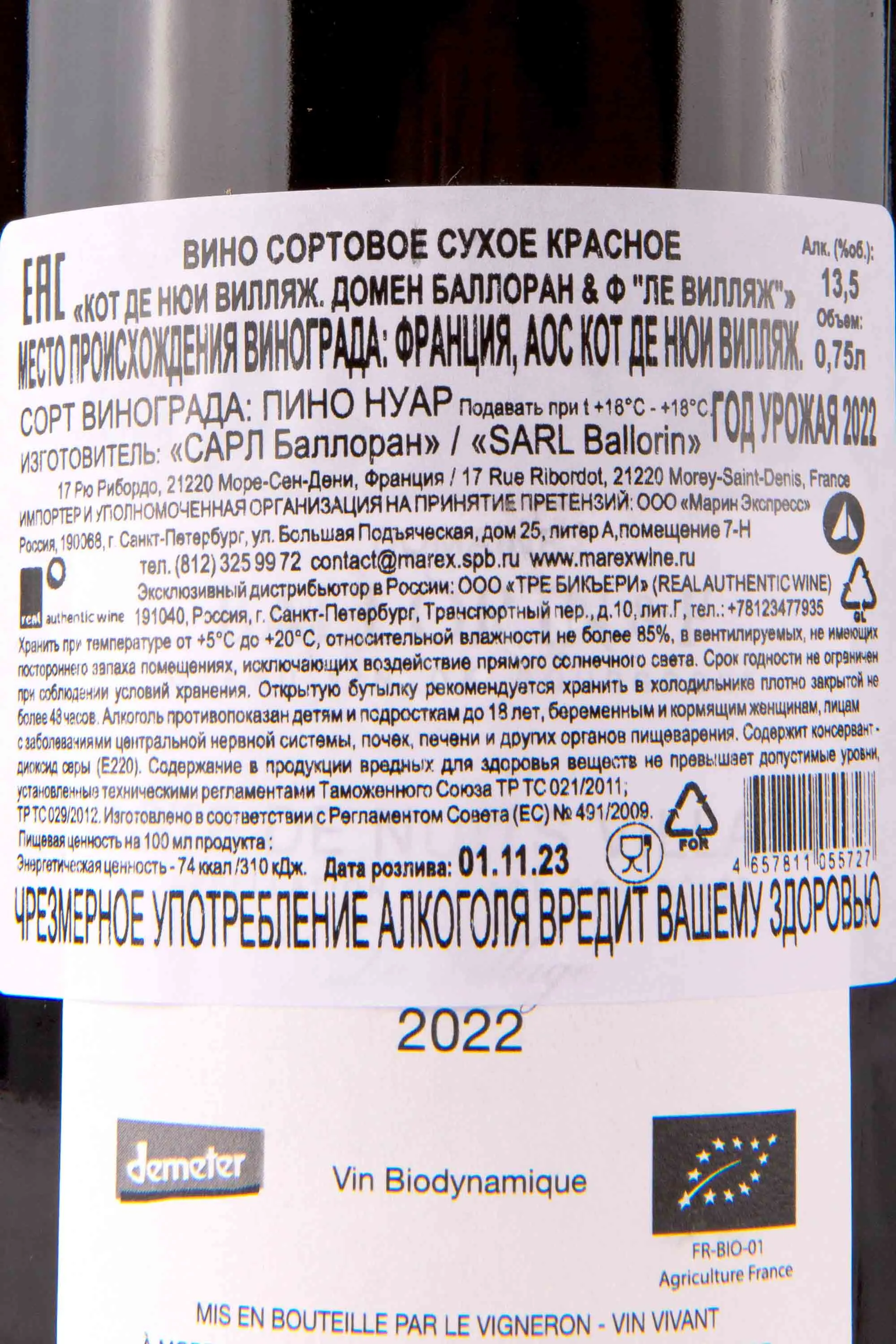 Домен Баллоран & Ф Кот де Нюи Вилляж Ле Вилляж 2022 0.75