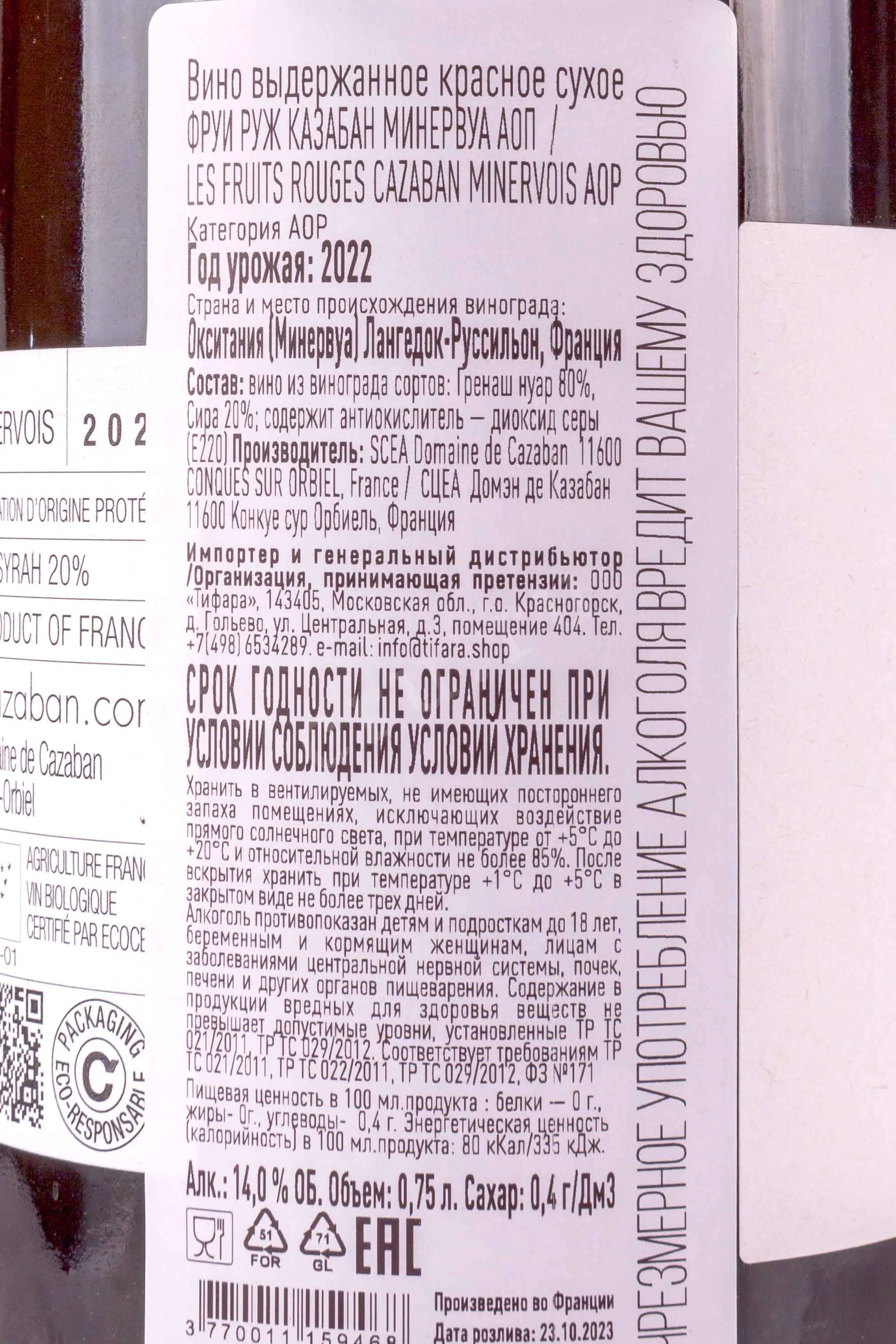 Domaine de Cazaban Les Fruits Rouges Minervois 0.75 л купить - Французское вино Домэн де Казабан Фруи Руж Казабан Минервуа цена в магазинег. Москва, ул. Профсоюзная, д. 16/1010:00-22:00 Ежедневно+7 (495) 920-20-02info@cru.ru