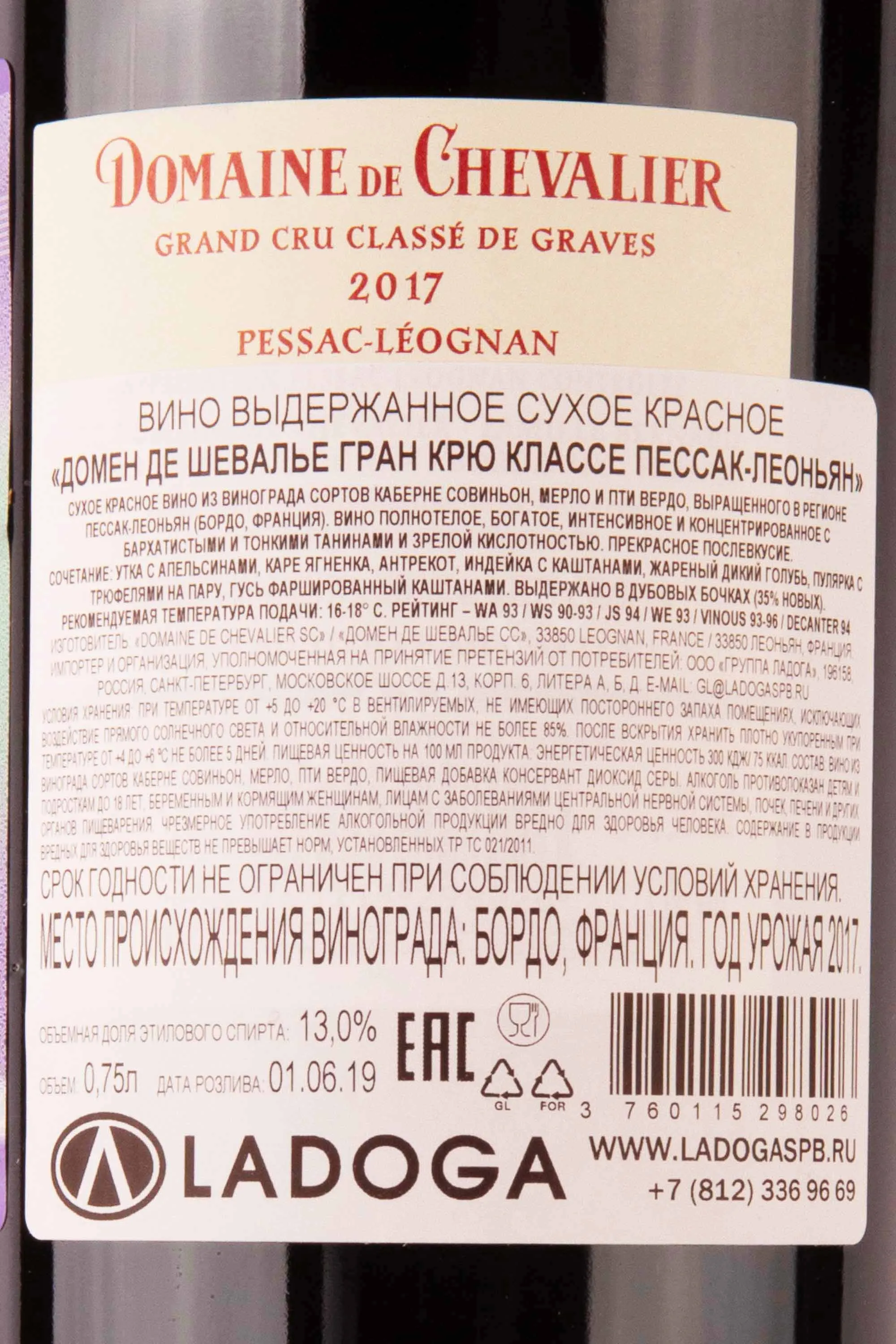 Domainе de Chevalier Grand Cru Classe Pessac-Leognan 2017 0.75 л купить - Французское вино Домен де Шевалье Гран Крю Классе Пессак-Леоньян цена в магазине г. Москва, ул. Профсоюзная, д. 16/10 10:00-22:00 Ежедневно +7 (495) 920-20-02 info@cru.ru