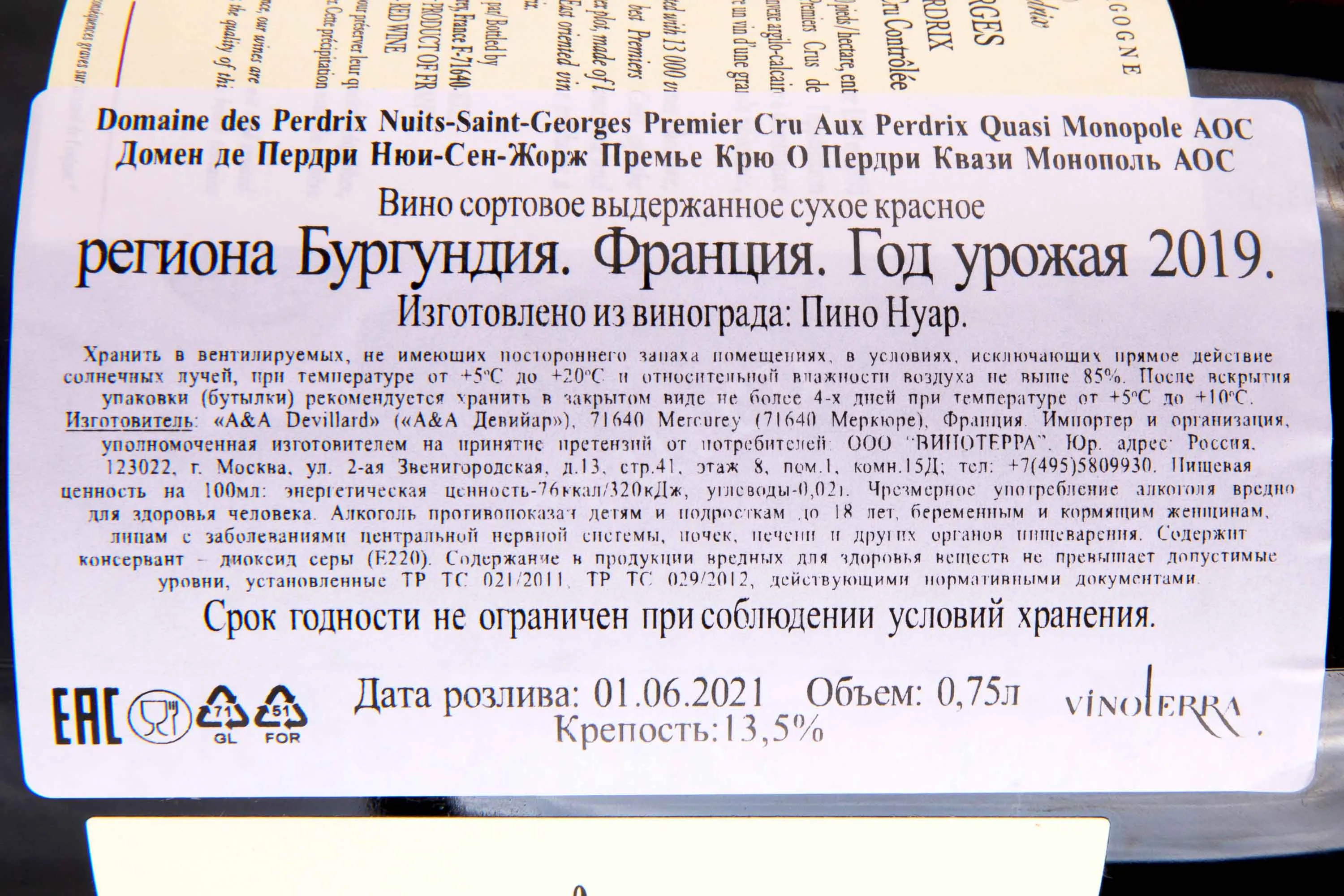 Domaine des Perdrix Nuits Saint George Premier Cru Aux Perdrix Quasi Monopole 0.75 л купить - Французское вино Домен де Пердри Нюи-Сен-Жорж Премье Крю О Пердри Квази Монополь цена в магазинег. Москва, ул. Профсоюзная, д. 16/1010:00-22:00 Ежедневно+7 (495) 920-20-02info@cru.ru
