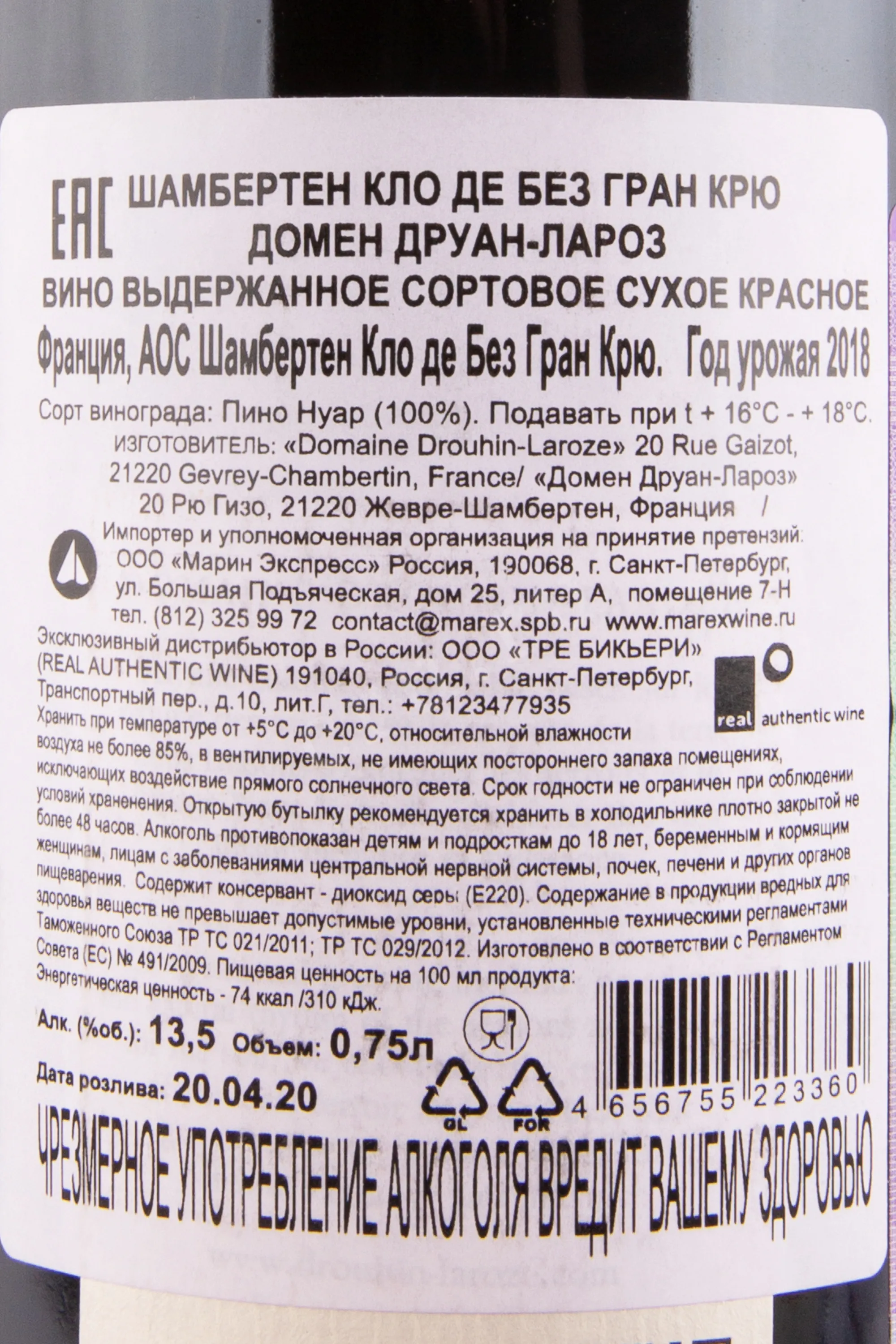 Шамбертен Кло де Без Гран Крю Домен-Друан-Лароз 2018 0.75