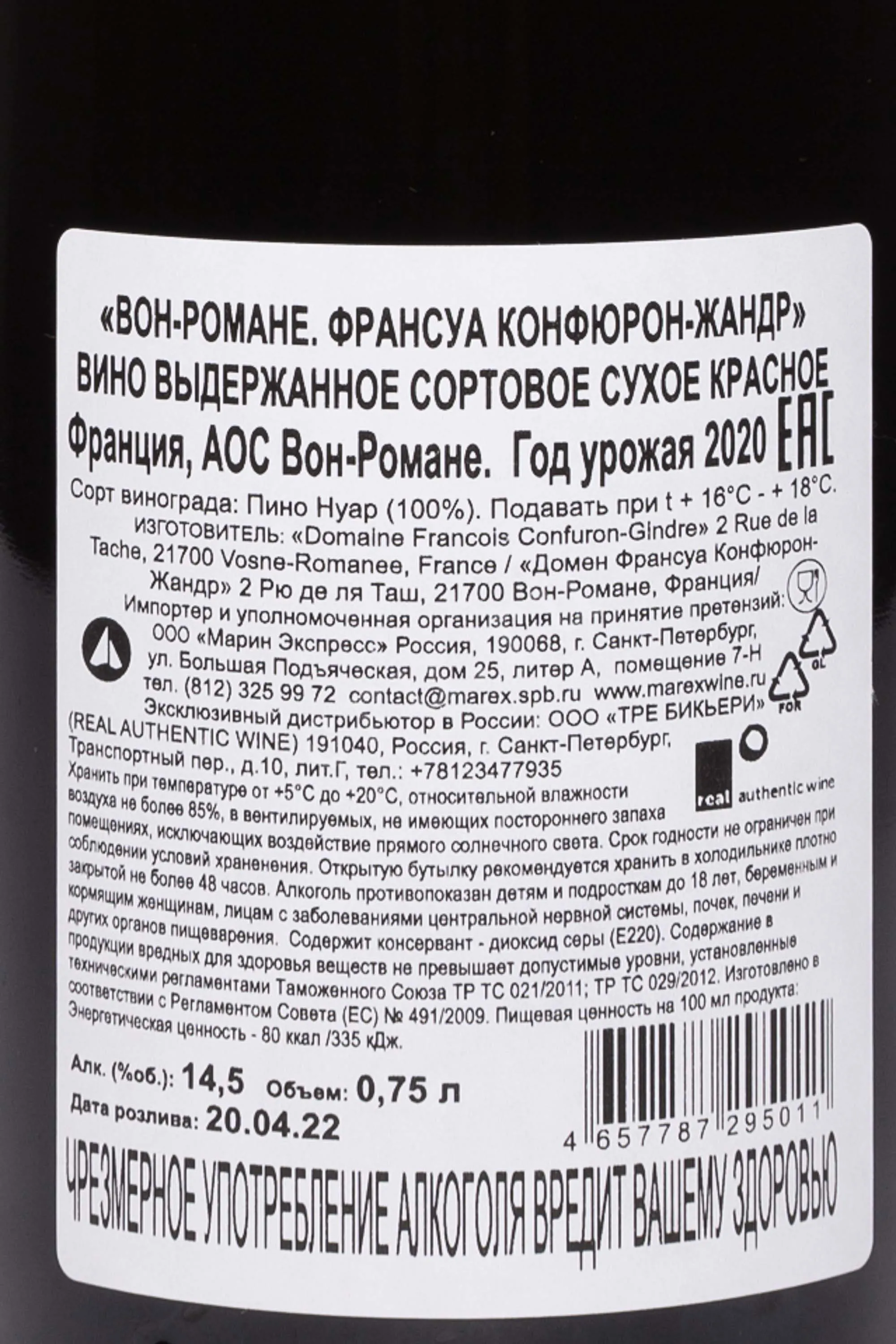 Красное сухое вино Domaine Francois Confuron-Gindre AOC 2020 года 0,75 л — изысканное, демонстрирующее подлинный бургундский стиль. Оно создано из сорта Пино Нуар, выращенного на участке Les Hautes Maizieres. Этот виноградник расположен рядом со стеной знаменитого Clos de Vougeot и отличается богатой почвой, где сочетаются железо, глина и известняк. 2020 года стал удачным для региона: тёплое лето и умеренная влажность обеспечили винограду насыщенный аромат и сбалансированную кислотность. Ферментация проводилась традиционным способом. Выдержка длилась 18 месяцев в дубовых бочках, 40% из которых новые, что добавило вину глубину и сложность. Розлив проводился по лунному календарю, что подчеркивает внимательное отношение производителя к природным циклам. Этот Пино Нуар получил высокие оценки у сомелье и критиков за чистоту вкуса и терруарную выразительность.