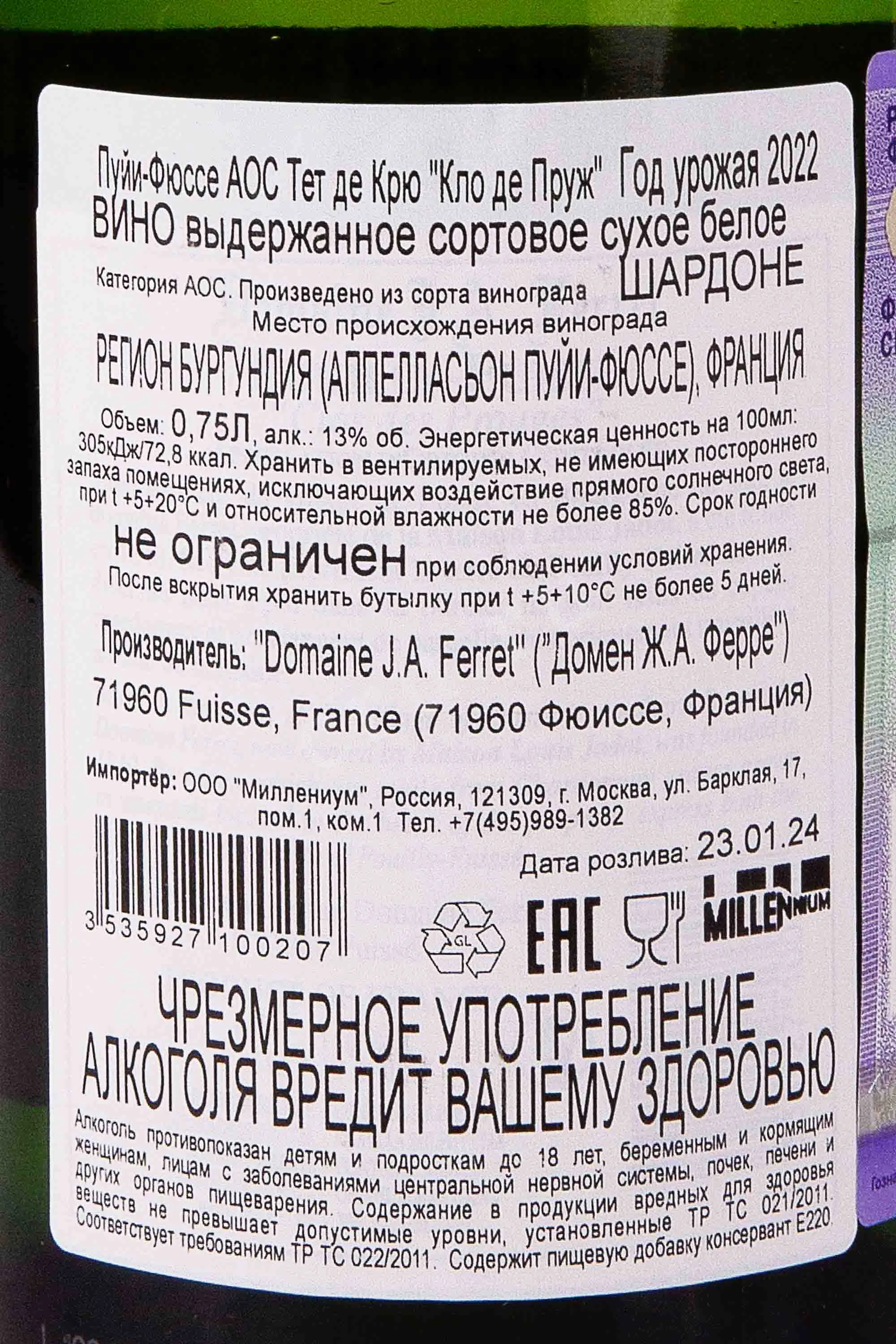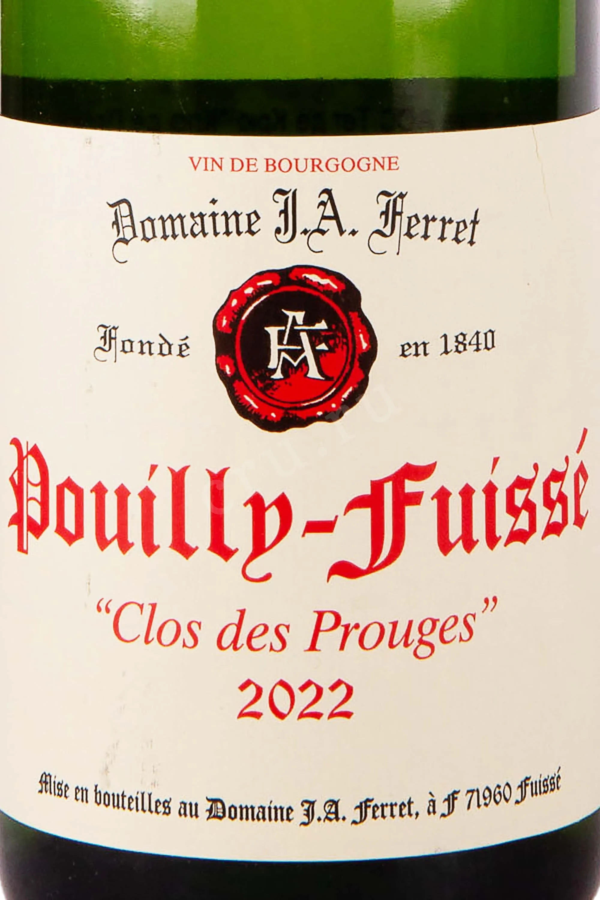 Domaine J.A. Ferret Pouilly-Fuisse Clos des Prouges 0.75 л купить - Французское вино Домен Ж. А. Ферре Пуйи-Фюиссе Кло де Пруж цена в магазинег. Москва, ул. Профсоюзная, д. 16/1010:00-22:00 Ежедневно+7 (495) 920-20-02info@cru.ru